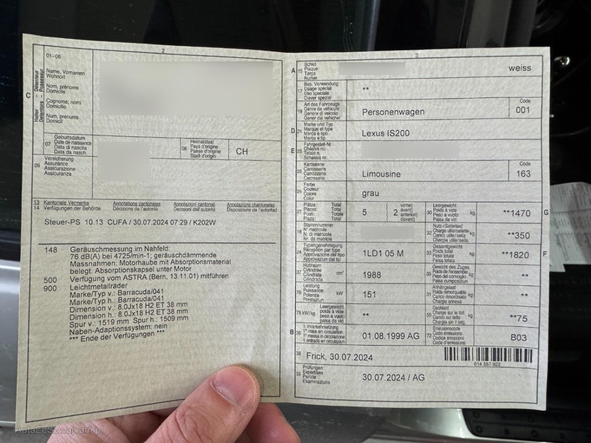 | Fahrzeugausweis | Vorhanden |