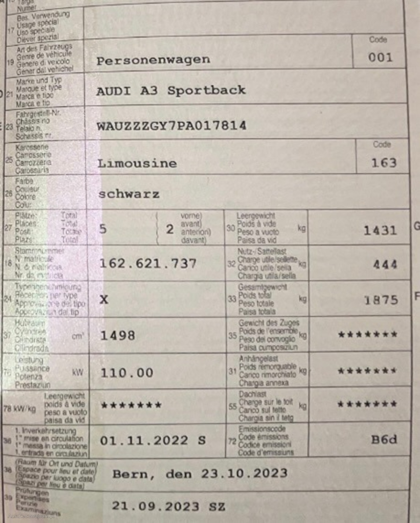 | VIN | WAUZZZGY7PA017814 |