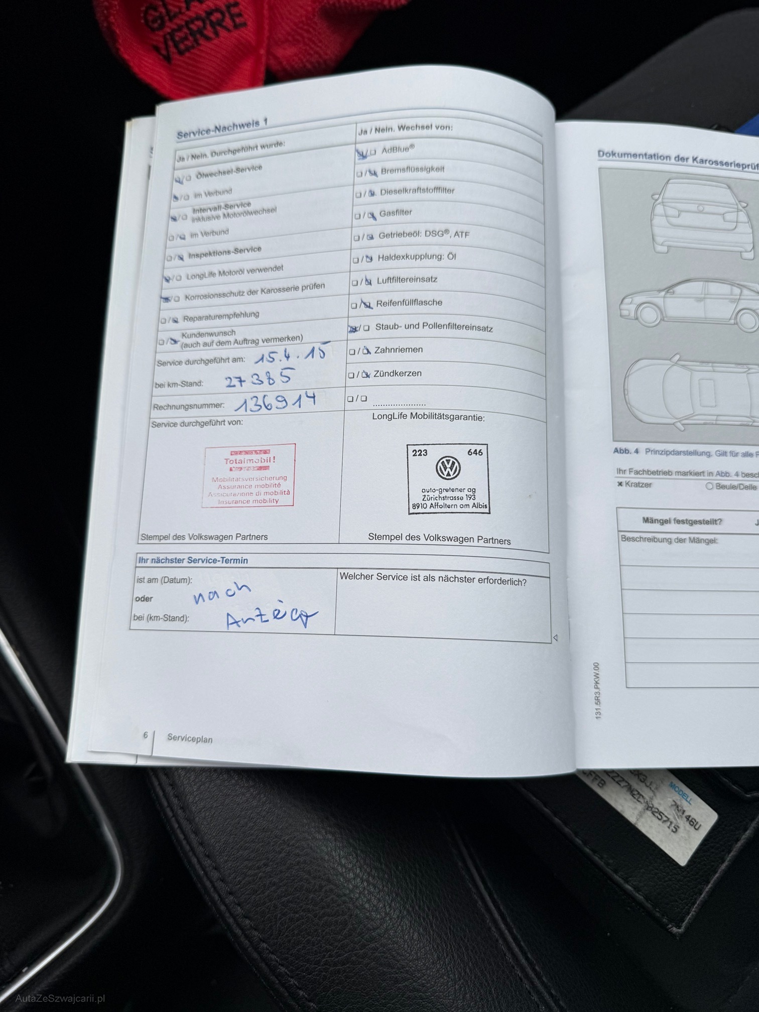| Kommentar | Kein Werkstattest durchgeführt, Kauf auf eigenes Risiko ohne jegliche Nachgewährschaft Karosserie gemäss Fotos, Unfallschaden vorne rechts |