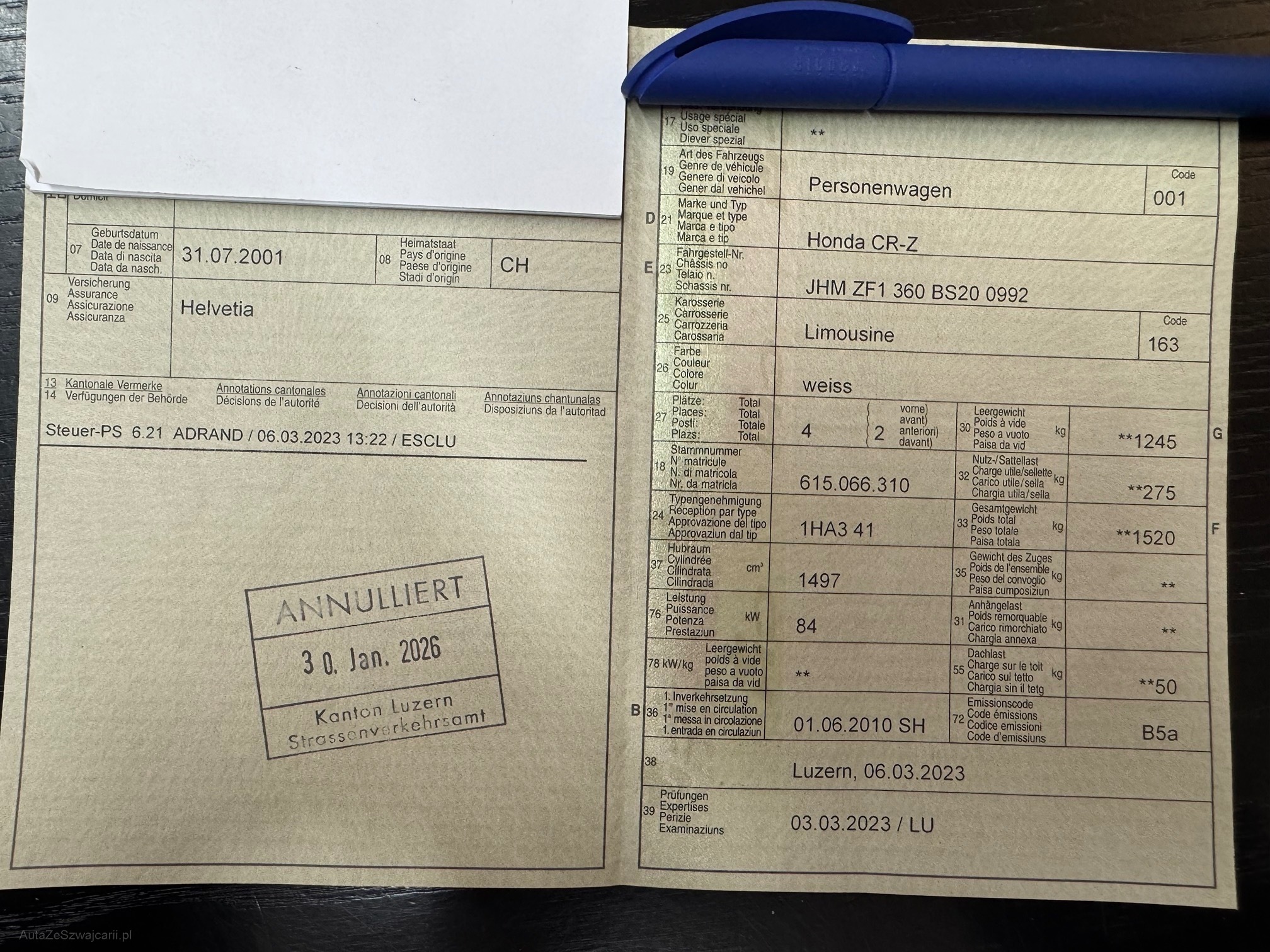 | Kommentar | Optisch ist das Fahrzeug von draussen so wie von innen sehr gepflegt. Fahrzeug läuft einwandfrei. Motor und Getriebe i.O. Servicegepflegt. 8-fach bereift. Zustand Siehe Fotos. Fahrzeug ab Platz, ohne Garantie und Aufbereitung. |
