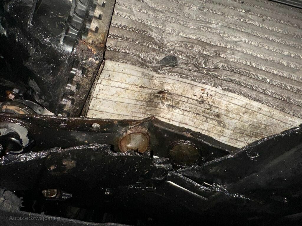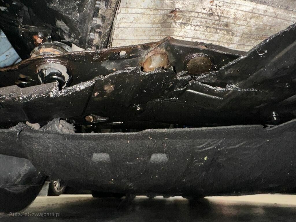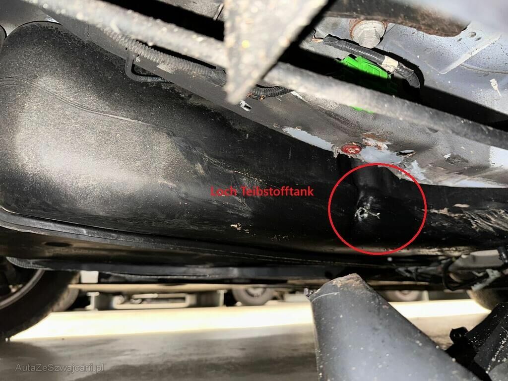 Beschädigung der gesamten Fahrzeugfront, alle Kühler eingedrückt, Unterboden deformiert, Treibstofftank, Brems und Treibstoffleitungen, diverse Motoranbauteile.