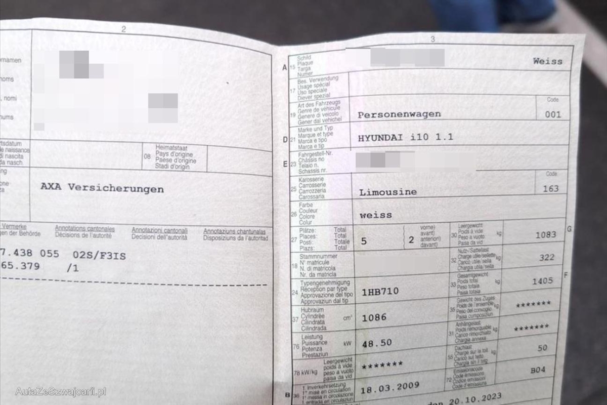 | Fahrzeugausweis | Vorhanden |