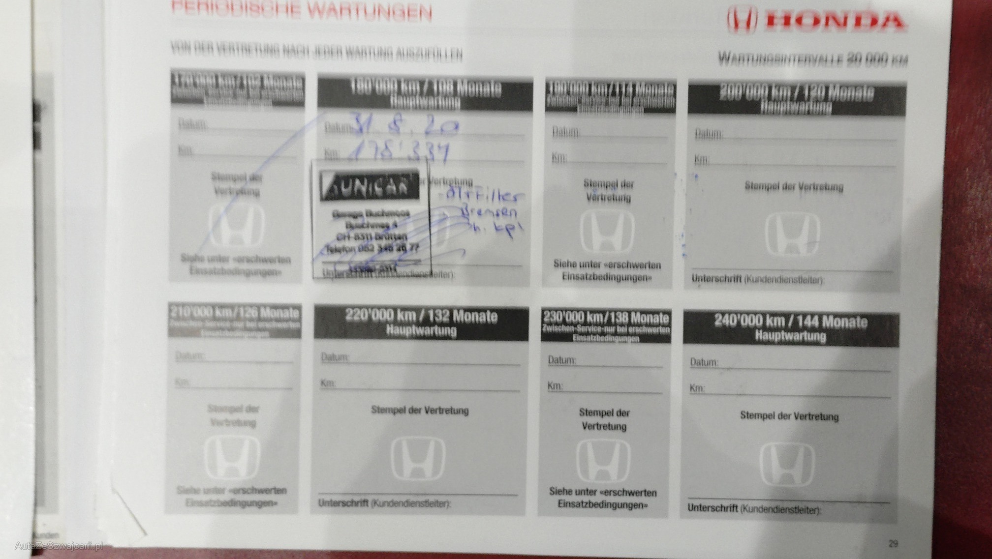 | Kommentar | - Bremszange hinten links klemmt, ersetzen => Bremsen hinten (Klötze, Scheiben) ersetzen - Gurt Fahrer rollt nicht auf - Sitzbezug Fahrersitz abgenutzt - Service ist überfällig - MFK ist überfällig (Auto wurde seit 13 Jahren mit Händler-Schild gefahren) - Fahrzeugbeschriftung muss entfernt werden keine vollständige Prüfung, Aufzählung nicht vollständig ABHOLUNG NACH ZUSCHLAG / VERFÜGBARKEITS-DATUM INNERT 7 TAGEN ERFORDERLICH, DANACH FR. 15.-/TAG STANDPLATZ-GEBÜHREN BARZAHLUNG BEI ABHOLUNG / MONTAG-FREITAG 08:00-12:00 UND 13:30-17:00 IM KUNDENAUFTRAG ZU VERKAUFEN, KEINE MWST VORSTEUER AUSWEISBAR. |