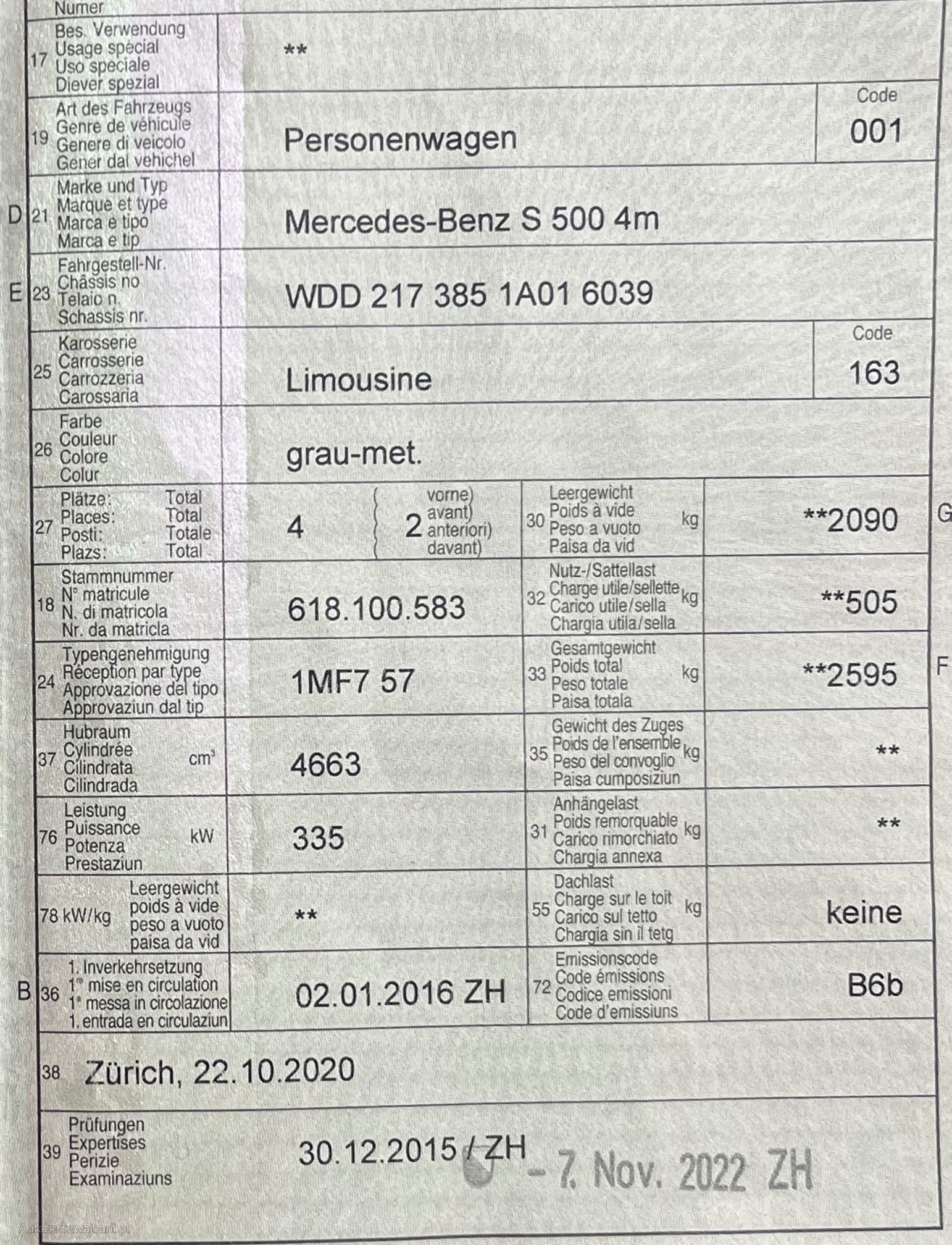 | Kommentar | Wunderschöner S500 sofort verfügbar! 8-fach Sommer/Winterkompletträder Wurde bereits professionell innen/aussen + Motorreinigung durchgeführt. Inkl. Entertainment Zubehör Keine Nachverhandlungen |