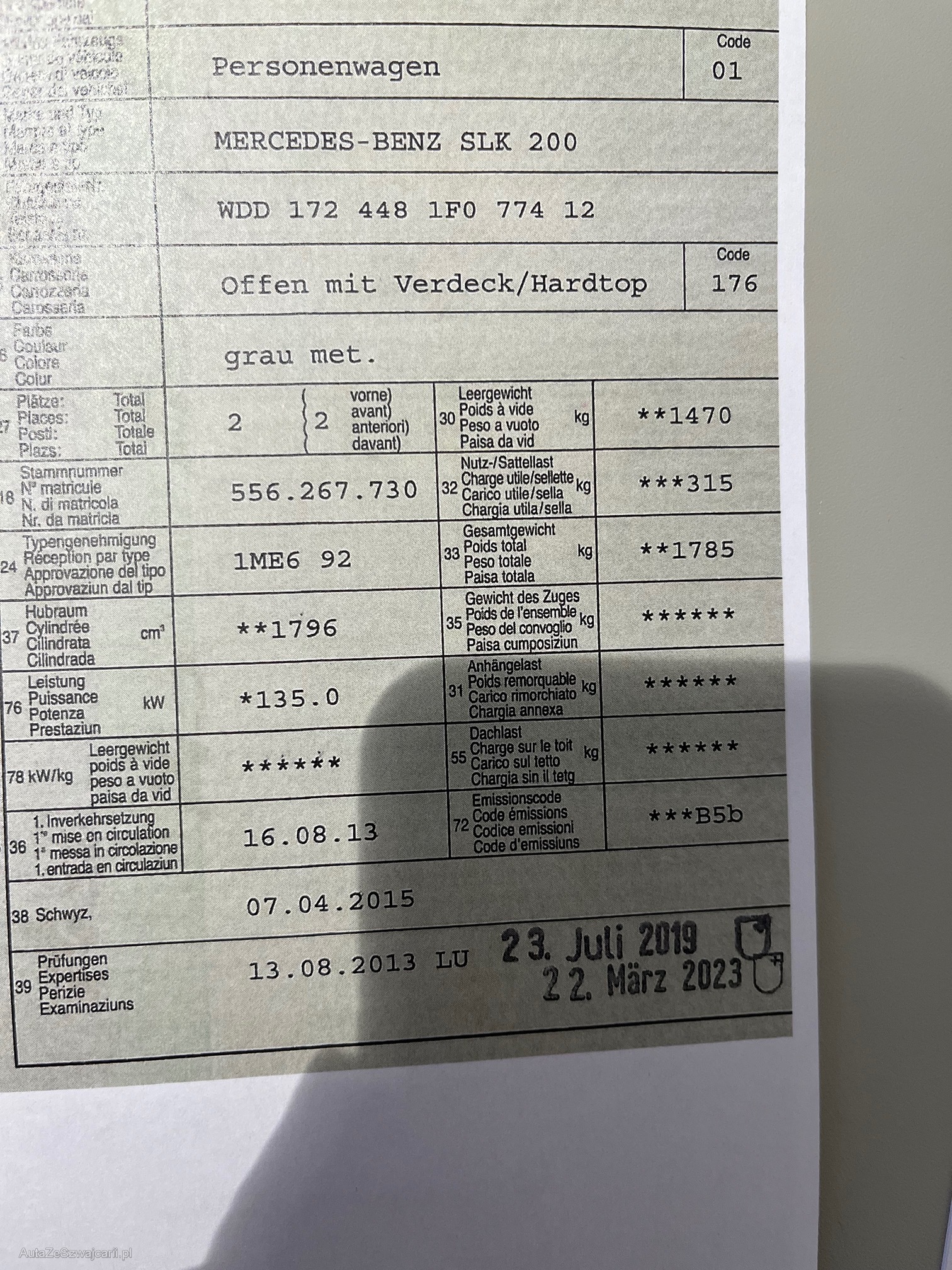 | Kommentar | Kundenfahrzeug aus 1. Hand, hat jedoch diverse technische Mängel - siehe Prüfbericht. Optischer Zustand sehr gut. Am Fahrzeug wurde kein Werkstatttest gemacht (Für sichtbare oder nicht sichtbare Mängel wird nicht gehaftet). Wir testen & kontrollieren nicht alle Funktionen des Fahrzeugs. Das Risiko liegt somit vollumfänglich beim Käufer. Ab Platz ohne Garantie, Wandelung und Minderung werden wegbedungen. |