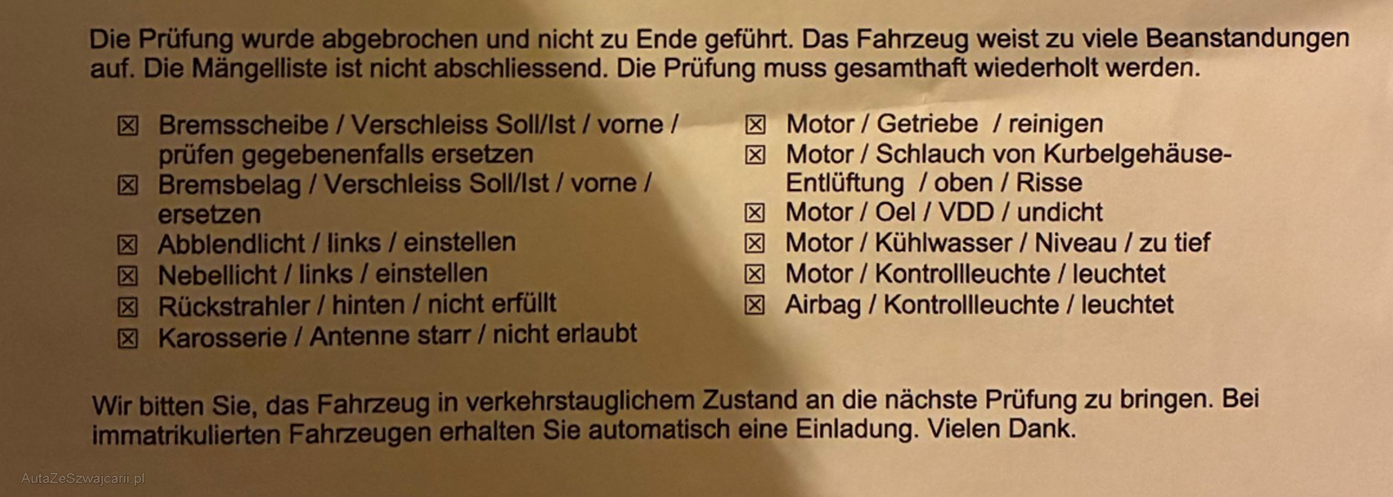| Vordere Bremsen müssen ersetzt werden | Yes |