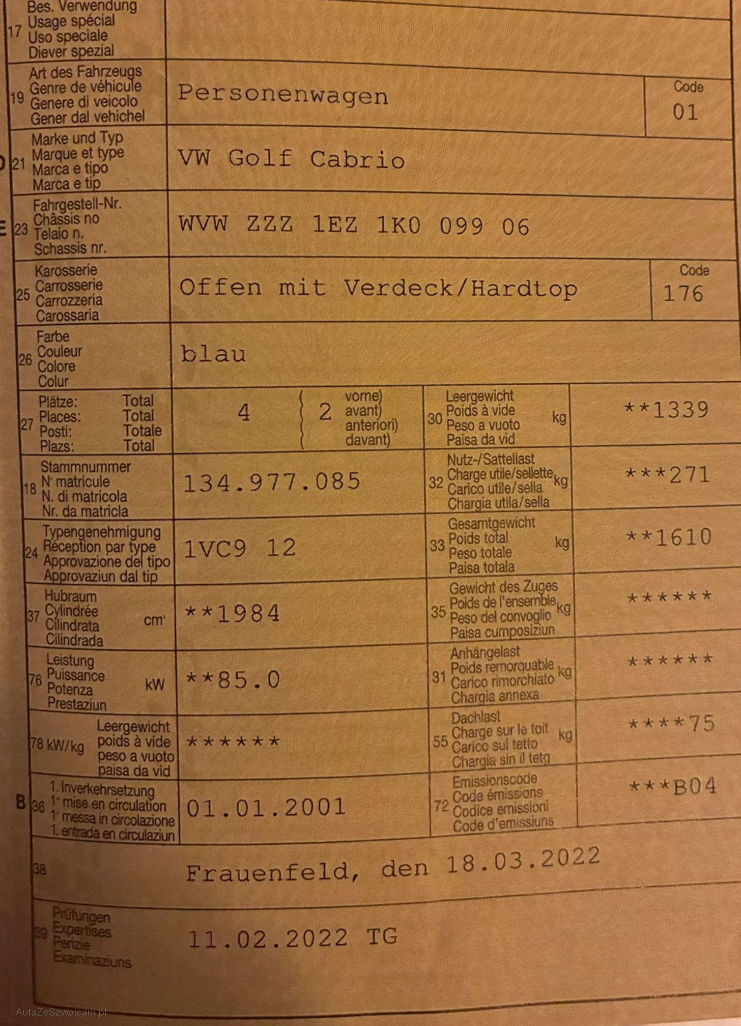 | VIN | WVWZZZ1EZ1K009906 |