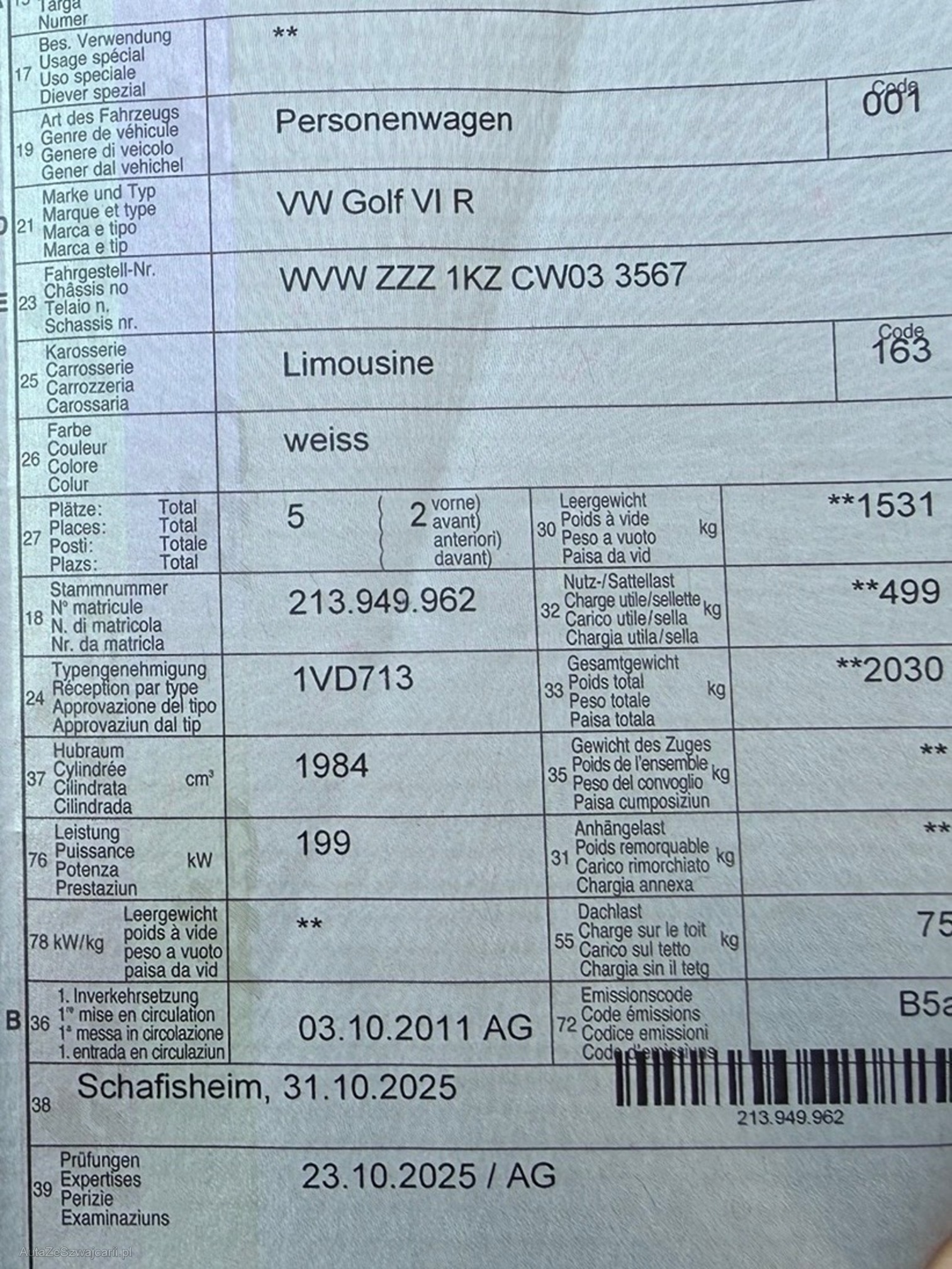 | VIN | WVWZZZ1KZCW033567 |