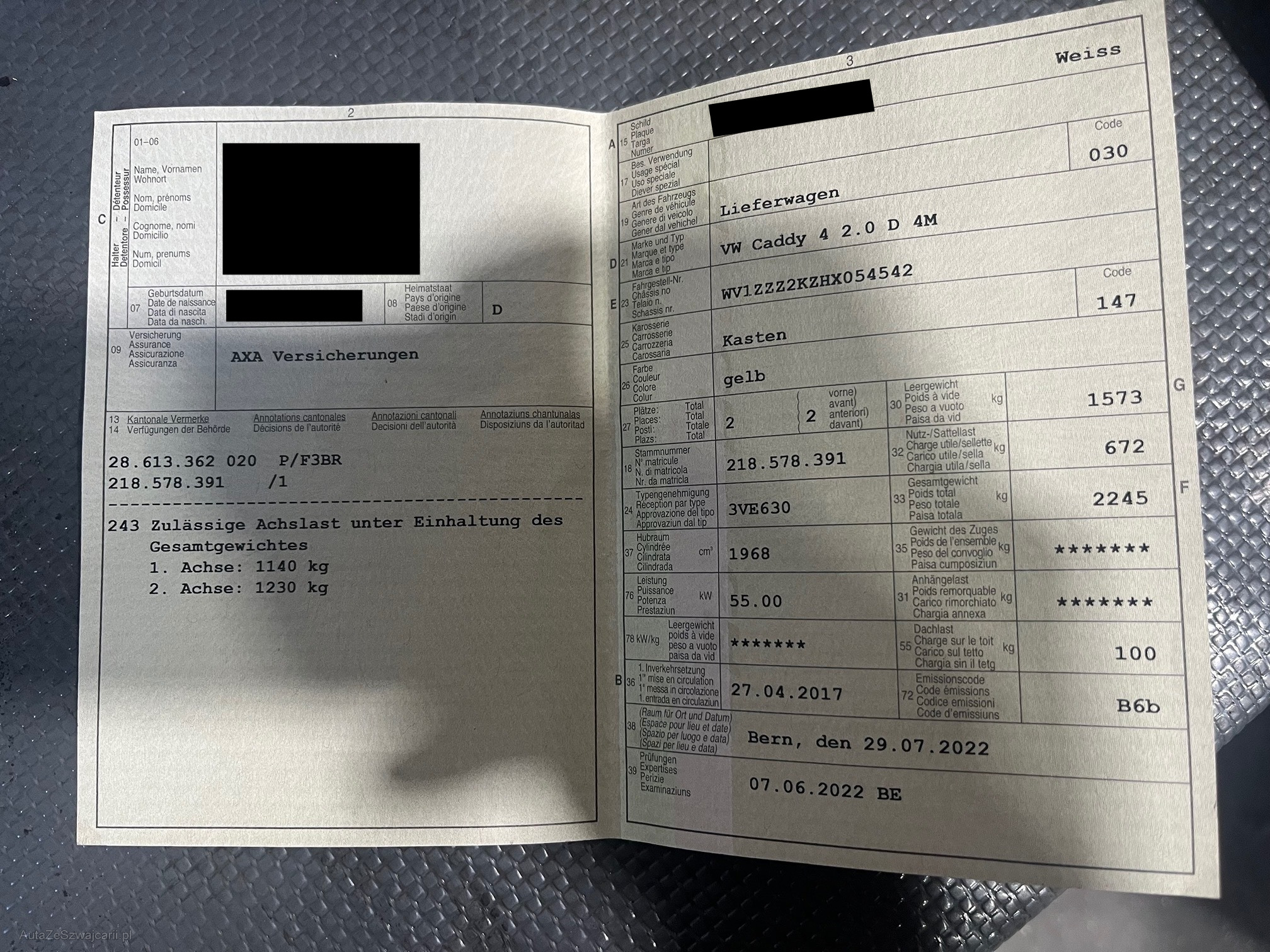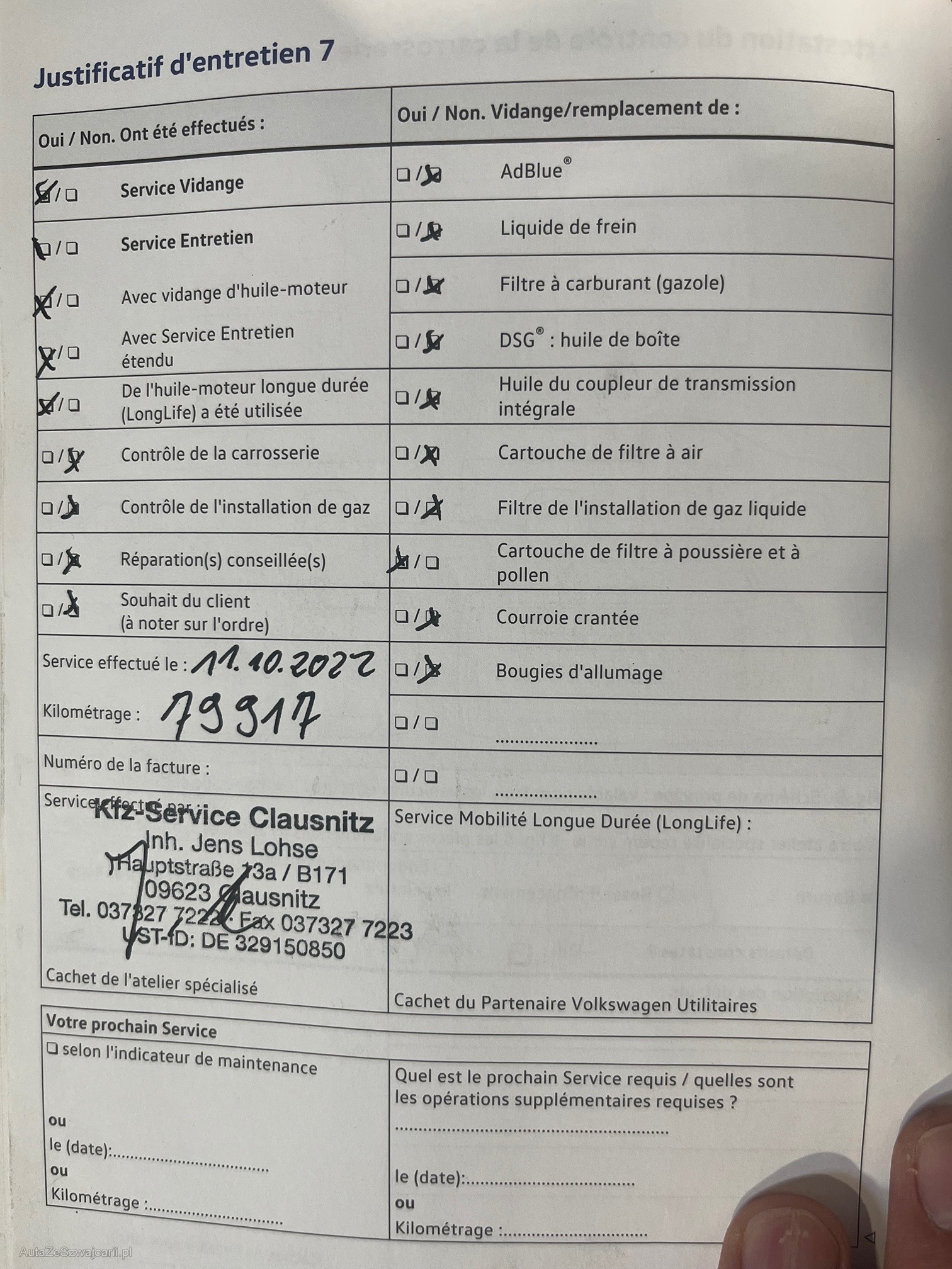 | Kommentar | ab Platz ohne Garantie, wird im Kundenauftrag ausgeschrieben, kurze Kontrolle durchgeführt, Kupplung wurde ersetzt, Motor läuft unrund, evtl. 2-Massenschwungrad, kleine Dellen in Dach, war auf MFK, DPF war kein Mangel, Stossdämpferschutzrohr verrostet, Keilriemen rissig, Stossstange vorne loose und verkrazt, Gebrauchsspuren siehe Bilder, nicht abschliessend. |
