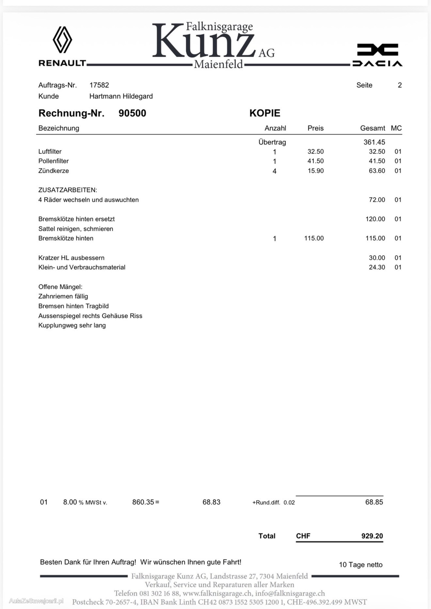 | Hintere Bremsen müssen ersetzt werden | No |