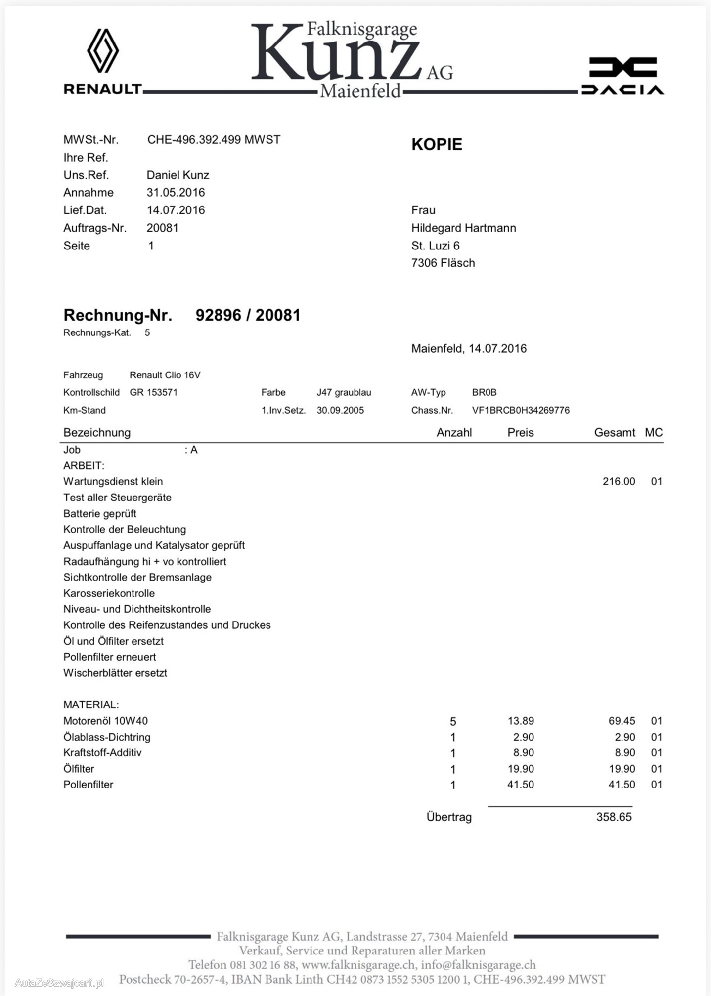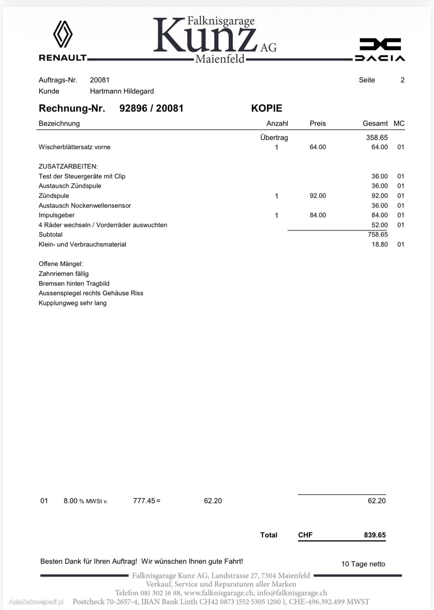 | Kommentar | Fahrzeug wurde kein Werkstatttest gemacht (Für sichtbare oder nicht sichtbare Mängel wird nicht gehaftet). Wir testen und prüfen nicht alle Funktionen vom Fahrzeug. Das Risiko liegt somit vollumfänglich beim Käufer. Nach erhalt des Zuschlags, gibt es keine Nachverhandlung, auch wenn nicht deklarierte Mängel zum Vorschein kommen. Ab Platz ohne Garantie oder Gewährleistung, Wandelung und Minderung werden wegbedungen. |