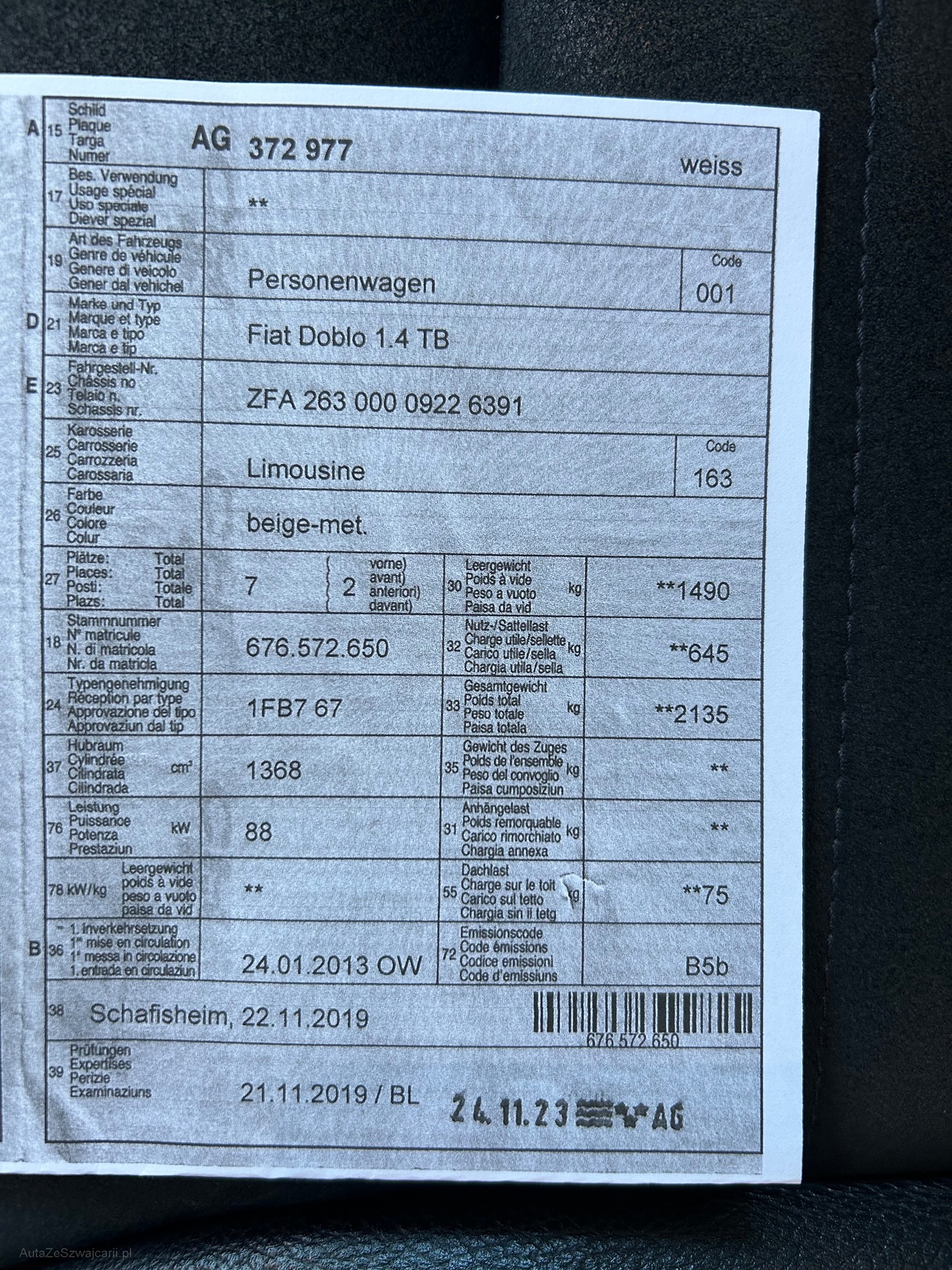 | Kommentar | Fahrzeug hat Motorschaden bitte Video im Anhang beachten. Abholung mit Anhänger in Kaisten 5082 |