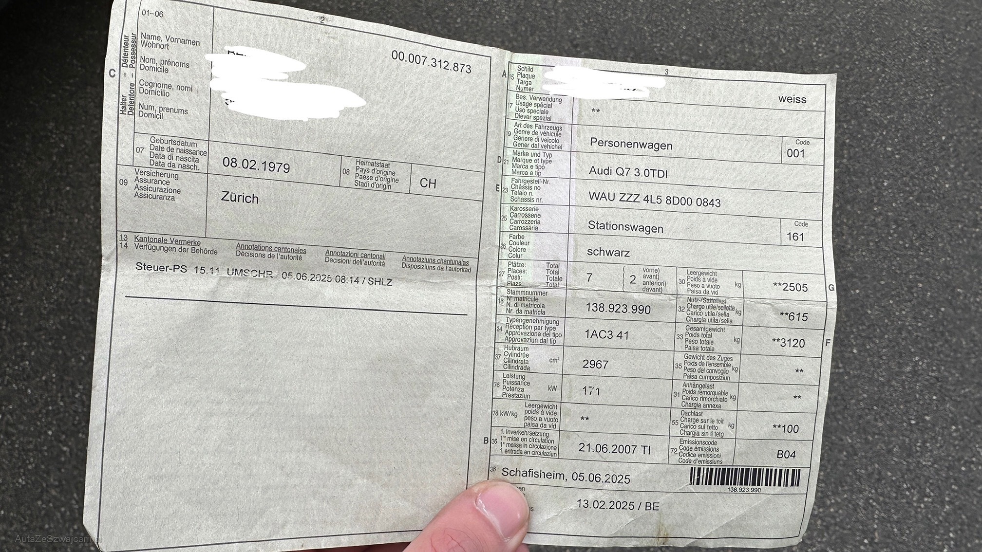 | VIN | WAU ZZZ 4L5 8D00 0843 |