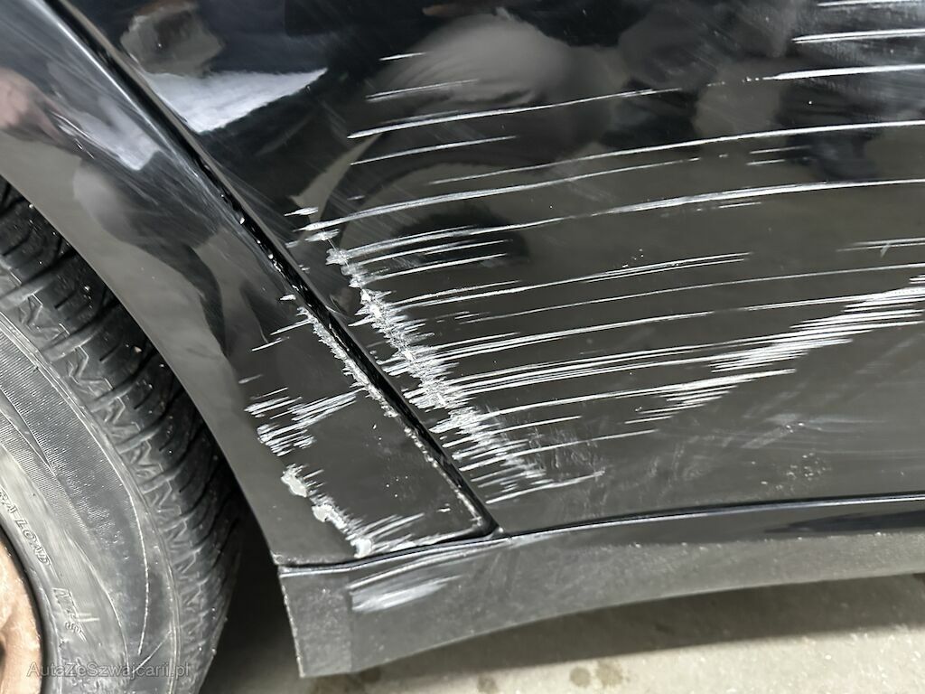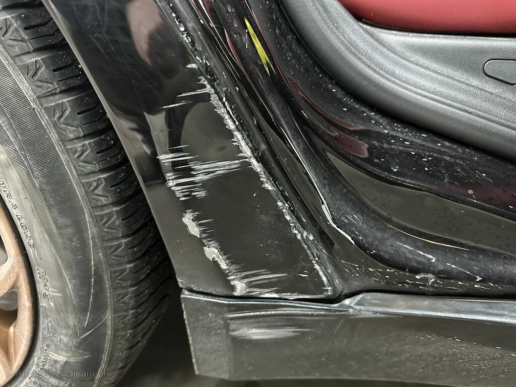 Anprall links hinten. Dabei wurden die Türe hinten und die Seitenwand beschädigt.