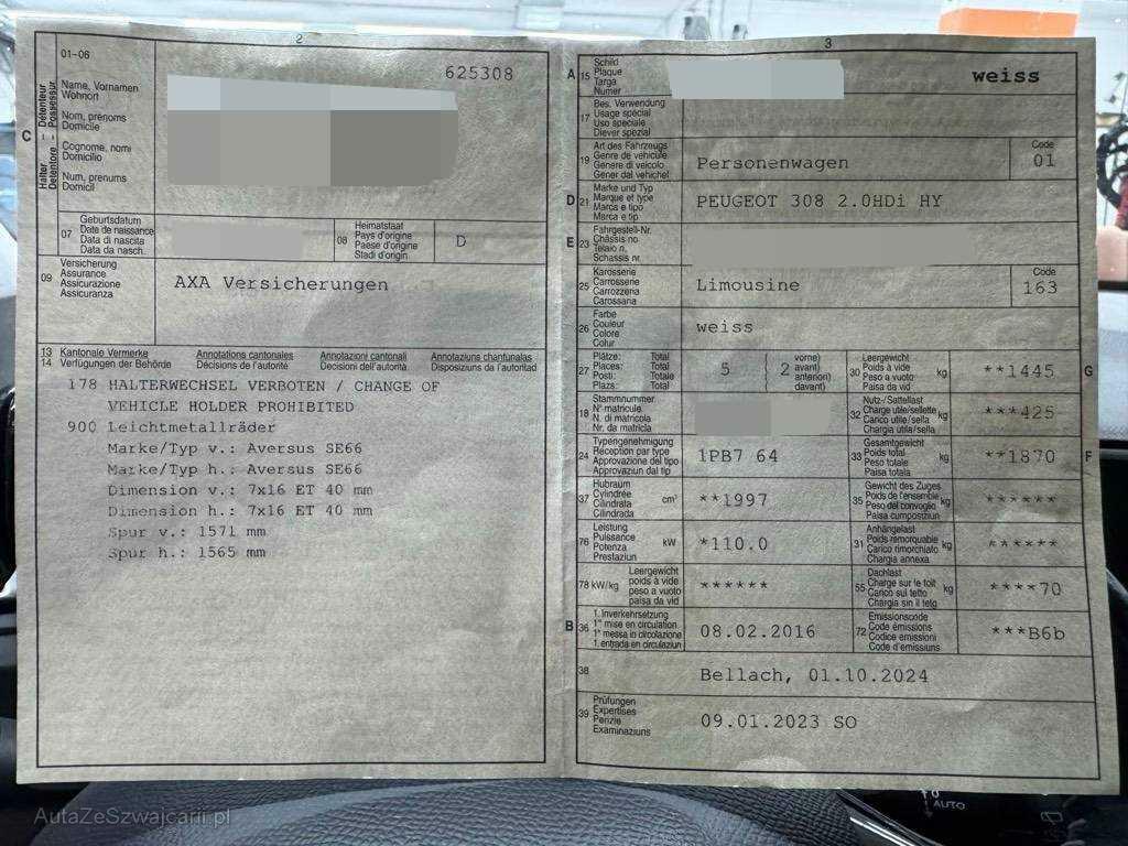 | Fahrzeugausweis | Vorhanden |