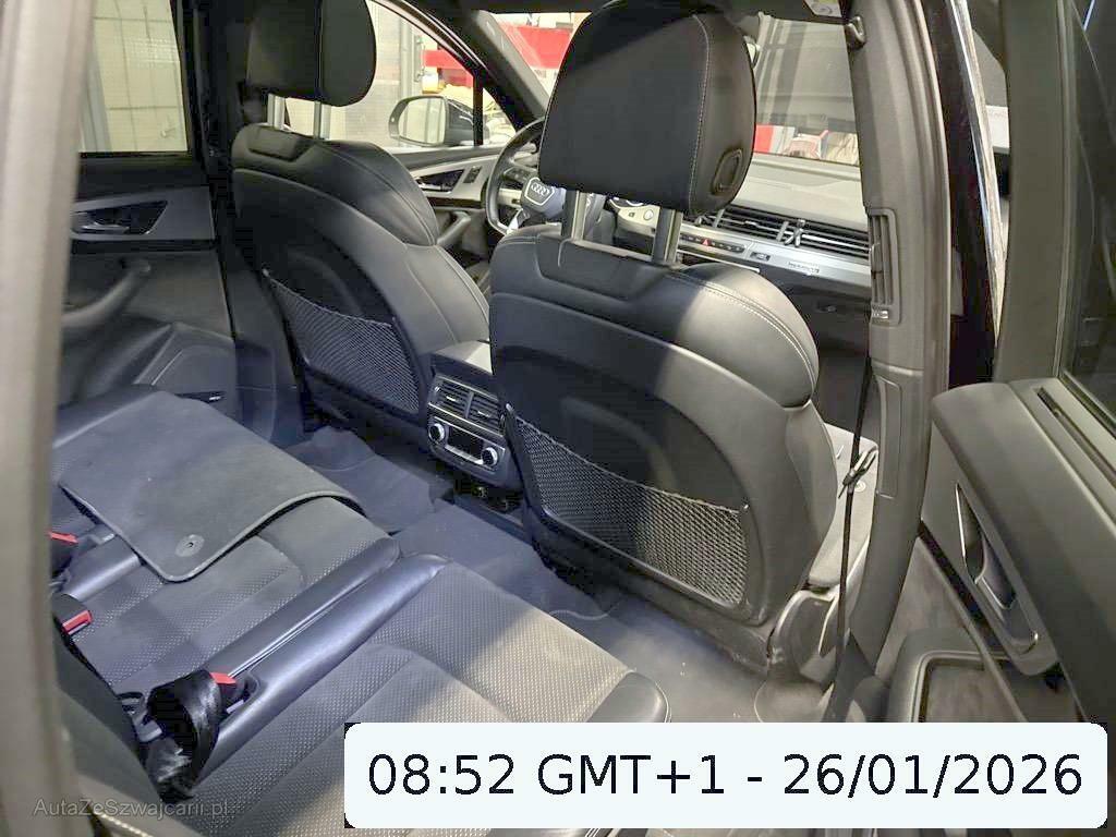 | Sonderausstattung | Assistenz Paket (Verkehrszeichenerkennung RSI (Road Sign Information System), Assist: Audi active lane assist, Adaptive cruise control), Anhängevorrichtung el. abschwenkbar, Dachhimmel schwarz, Sportsitze vorne, inkl. PV1, Gepäcktrennnetz, Aussenspiegel rechts und links beheizt, elektrisch verstell-/ und einklappbar mit Memory - inkl. automatisch abblendend, Optikpaket Titanschwarz Audi exclusive, Nichtraucherausführung, S line Exterieurpaket, 3. Sitzreihe mit 2 Sitzen, Dekoreinlagen Chromlack schiefergrau, oben Aluminium gebürstet Sono, Schliesshilfe für Türen, Mittelarmlehne vorne mit Ablagefach, Abgedunkelte Seiten- und Heckscheibe, Komfortschlüssel, advanced key Edelstahl, Gepäckraumabdeckung elektrisch, Elektrisch verstellbares Lenkrad, Audi virtual cockpit 12,3'', Adaptive air suspension sport elektronisch geregelte Luftfederung, S line Sportpaket inkl. adaptive air suspension sport und vordersitzen elektrisch einstellbar, Media: MMI Navigationssystem Plus, Kopfstützen vorne mit X-Verstellung, Audi connect, Grösserer Kraftstofftank, Panorama-Glasdach, Alcantara gelocht-/Leder mit S-Prägung, Scheinwerfer-Waschanlage, Dachreling schwarz, Matrix LED Scheinwerfer, Multifunktions-Sportlenkrad in Leder, unten abgeflacht mit Schaltwippen, Ambientebeleuchtung, Sonnenblende ausziehbar, Sonnenschutzrollos für Heckscheibe und hintere Türscheiben, Garantie: Audi Garantie: 4 Jahre oder 80'000 km (ab 1. Inv.), Bose Soundsystem, Hinterachslenkung, Assist: Parklenkassistent, Vordersitze elektrisch verstellbar mit Lendenwirbelstütze, 4-Zonen-Klimatisierungsautomatik, Metallic-Lackierung |