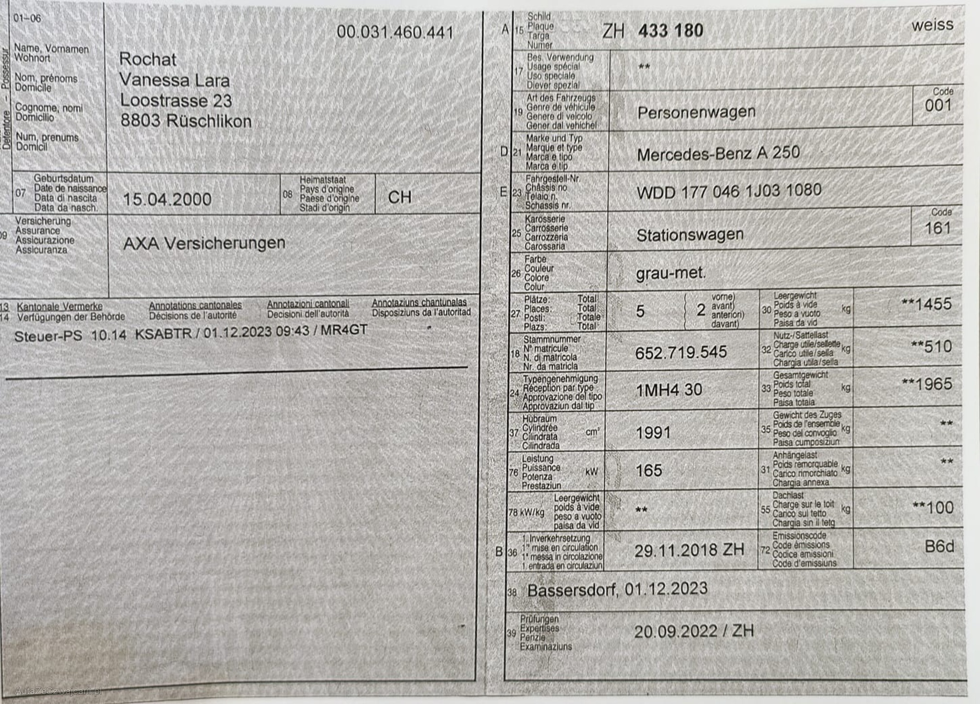 | Kommentar | Ab Platz, kein Test durchgeführt. Ohne Garantie |