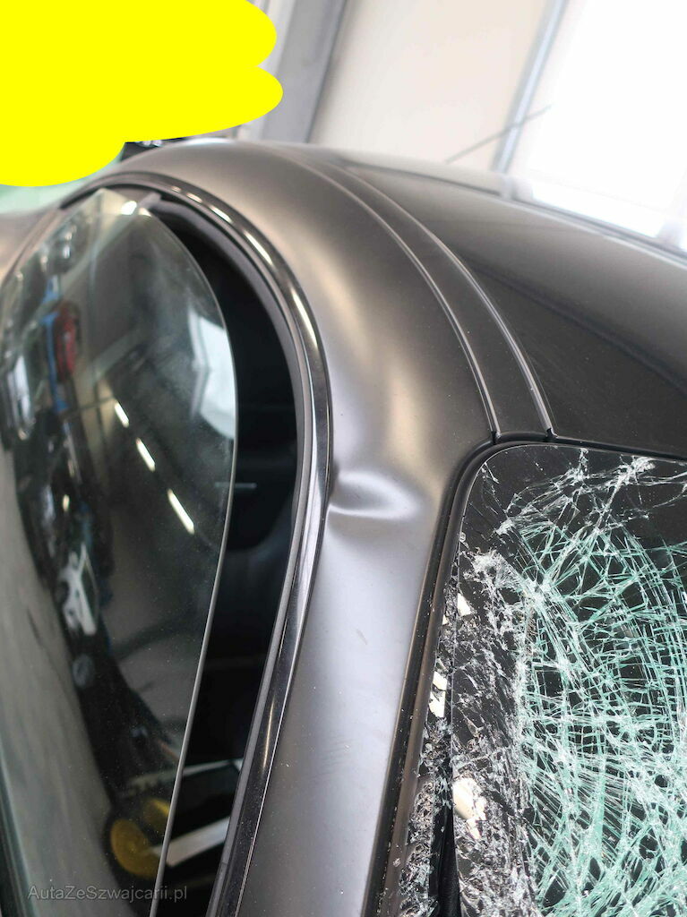 Komplette Front, Kotflügel vorne links und rechts, Felge vorne und hinten rechts, Radhaus bis A-Säule vorne rechts, Spritzwand rechts, A-Säule/Dachrahmen rechts, Frontscheibe, Glassplitter auf Armaturenbrett, Seitewand hinten rechts, Türe rechts und links zu Seitenwände verschoben,