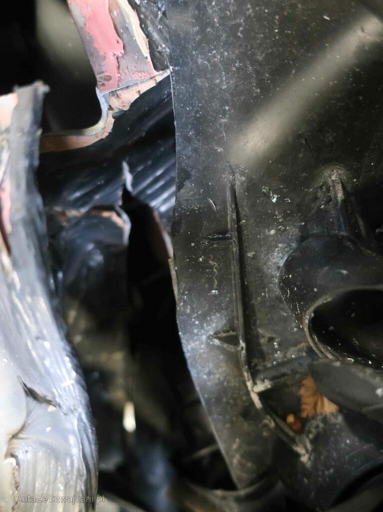 Fahrerairbag und Knieairbag Fahrer ausgelöst, Gurtstraffer Fahrer ausgelöst, Motor rechts ziemlich stark nach hinten verschoben, Risiko Motor und Getriebe