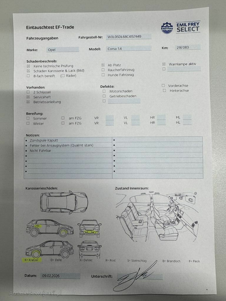 | Information | -Zündspule kaputt - Fehler bei Ansaugsystem (Qualmt stark) - Nicht Fahrbar - 1 Schlüssel |
