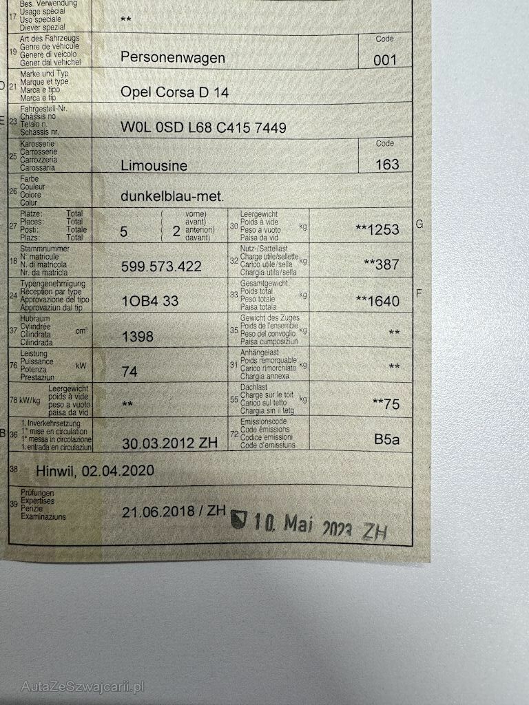 | Typ | Corsa 1.4 |