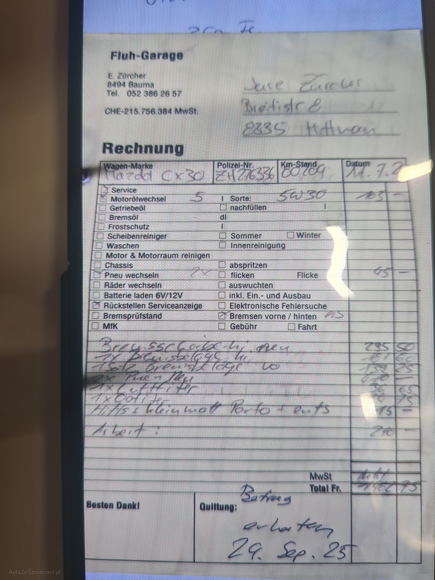 | Vordere Bremsen müssen ersetzt werden | No |
