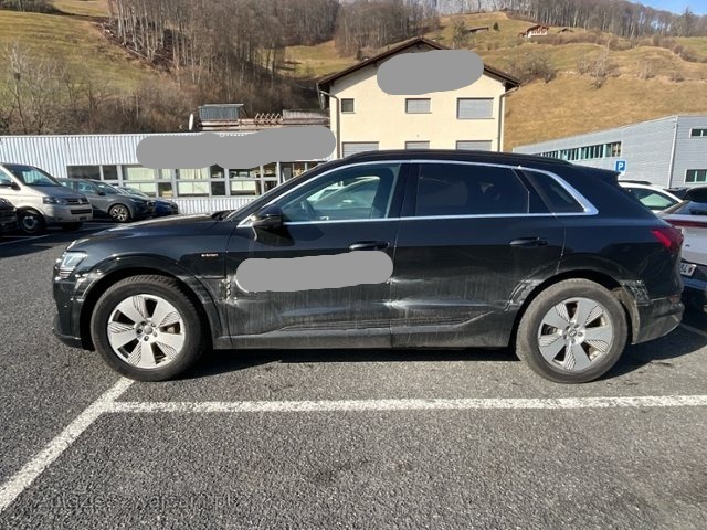 | Condition_and_Equipment | Zustand Fahrzeug ist fahrbar. Bereifung Fahrzeug wird mit Winterräder abgegeben. --- Links Linke Seite beschädigt. Anstoss links im Bereich der A-Säule. Anstoss links im Bereich der B-Säule. Anstoss links im Bereich der C-Säule. Anstoss links im Bereich der D-Säule. Achse Risiko Vorderachse. Hochvoltfahrzeug Keine sichtbaren Schäden am Antriebsakku Weitere Beschädigungen Felge vorne links --- Serienaustattung Mittelarmlehne vorne Tempostat Aussenspiegel elektrisch verstellbar und heizbar Airbag Fahrer und Beifahrerseite Seitenairbag Fahrer und Beifahrerseite Seitliches Kopfairbagsystem SIDEGUARD Radschrauben mit Diebstahlsicherung Nichtraucher- Ausführung Scheinwerfer Reinigungsanlage ABS und EBV Elektr. Bremskraftverteilung ESP Elektronisches Stabilitätsprogramm Adaptive air suspension Radioempfang digital DAB Tirefit Pack Glanz Fussmatten vorn und hinten 12 V Steckdose Multifunktions-Lenkrad 4-Speichen/ Schaltfunktion Isofix Kindersitzverankerung für Rückbank Einstiegsleisten Aluminium Reifendruck-Kontrollanzeige Audi music interface Innenspiegel automatisch abblendbar Normalsitze vorne Audi Sound System Rücksitzlehne geteilt umklappbar Audi Lane Assist (Spurverlassenswarnung) Isofix Kindersitzverankerung für Beifahrersitz Gepäckraumklappe elektrisch öffnend und schliessend LED-Scheinwerfer Bluetooth Schnittstelle Deaktivierung Beifahrerairbag Audi pre sense basic Audi Parking System plus Keine Gewähr auf die Angaben der Serienausstattungen Komfort Klimaautomatik Audi pre sense front Audi virtual cockpit Audi connect Notruf & Service Audi connect Navigation & Infotainment MMI Navigation mit MMI touch response Kontrastlackierung Sonderausstattung Sitzheizung für Vorder- und Hintersitze Aussensp. el. verstellbar/ heizbar/ abblendbar/ anklappbar Sportsitze vorne Dachhimmel schwarz/ Stoff Dachreling schwarz Reifendruck-Kontrollsystem RDK Lenksäule Neigungs- und Axialverstellung elektrisch Klimaautomat Vier-Zonen Komfort-Mittelarmlehne vorne Leder Valcona Servoschliessung Türen vorne und hinten Volllackierung Vordersitze elektrisch verstellbar/ Fahrersitz mit Memory Panorama-Glasdach Einstiegsleisten Aluminium beleuchtet Anschlussgarantie für das 4.+ 5. Jahr/ 100'000 km Vorbereitung für Anhängevorrichtung Head-Up Display Scheiben abgedunkelt Audi Phone Box Matrix LED-Scheinwerfer Diebstahlwarnanlage/Komfortschlüssel/Gepäckraumentriegelung Audi smartphone interface Akustikverglasung Audi music interface im Fond Pack Air Quality Audi pre sense fond Bang & Olufsen Premium Sound System Pack Assistenz Stadt Audi virtual cockpit plus Pack Assistenz Tour Komfort Standklimatisierung Lichtpaket Ambiente mehrfarbig Einstiegs LED mit Projektion |