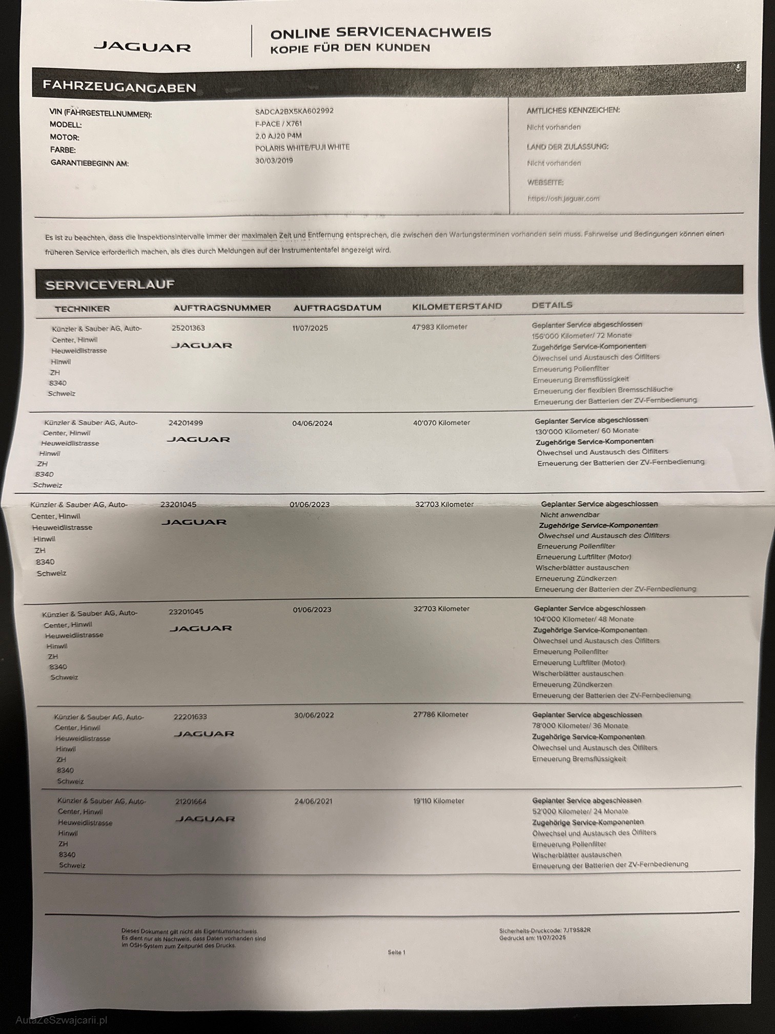 | Kommentar | Unsere Fahrzeuge wurden keiner Prüfung unterzogen. Fahrzeugkauf auf eigenes Risiko ab Platz ohne Nachwährschaft. Das Gewährleisten für Sachmängel wird weggegangen. Fahrzeuglieferung, Fahrzeugzustand und Ausstattung gemäss Bildern. Kleine Gebrauchsspuren siehe Fotos |