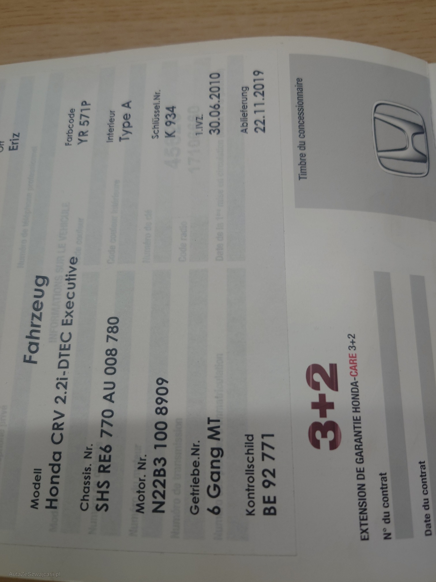| VIN | SHS RE6 770 AU 008 780 |