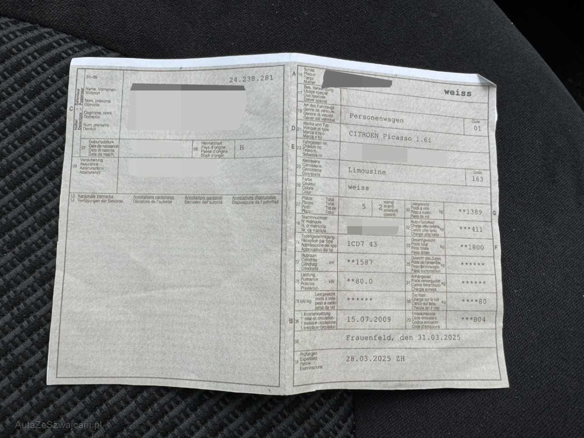 | Fahrzeugausweis | Vorhanden |