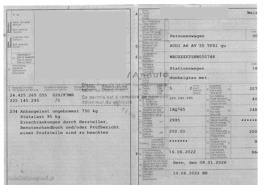 Keine Gewähr auf die Angaben der Sonder- und Serienausstattung / keine mechanische Prüfung. Fahrzeug wurde unzerlegt expertisiert / keine Haftung für allfällige, nach Demontage bekanntwerdenden Mängel. Fahrzeugbereifung und Ausstattung gemäss Fotos / Fahrzeugkauf auf eigenes Risiko ab Platz ohne Nachwährschaft.