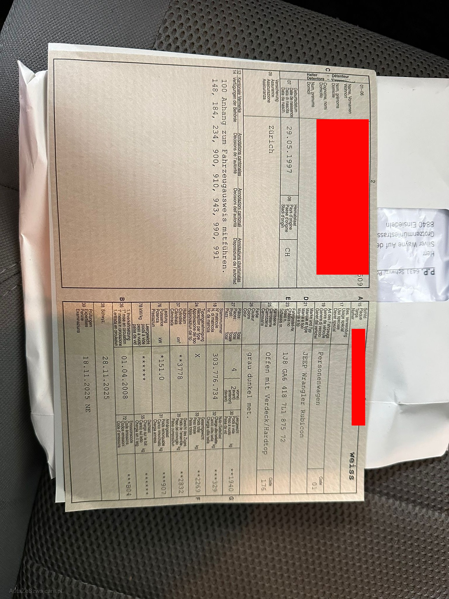 | Kommentar | Es handelt sich hier um ein Kostenintensiv aufgebauten Jeep Wrangler, es ist ein US Import mit den Kleinen Stosstangen und dem unzerstörbaren & sehr beliebten Motorisierung der Offroadercomunity mit 3.8 Liter V6 mit 205 PS. Das Fahrzeug ist ab MFK 18.11.2025 - Lift Kit 5 Eingetragen, - Jeep Sommerräder 7.5X17 Eingetragen - Cooper Discovery 33Zoll Räder 285/70/R17 - Ansaugschnorchel Eingetragen - Halterung für Schaufel - Halterung für Axt - Rockslider - Apple Carplay & Android Auto Radio mit Bluetooth, Navi, Youtube & vielem mehr. - Grill mit Bösem Blick - Sportauspuffanlage ohne gutachten(Original wird mitgegeben) Das Fahrzeug weisst Optisch einige Gebrauchsspuren auf, Kratzer & Dellen & Lackabplatzer sind keine Seltenheit, da er Ordentlich als Offroader Gebraucht wurde. Bekannte Mängel: - Nach ca 100km kommt manchmal die Motorlampe P0430 Katalysatorineffizienz Bank2 - P0944 Hydraulikpumpen- Vorfülldruckverlust - Wie Beschrieben & zu sehen auf den Fotos Carosserie & Felgen weisen einige Schäden auf - Reifen sind zu ersetzen, haben ca 6mm sind aber 10 jährig - Allrad antrieb spinnt, sobald der 4x4 zugeschaltet wird merkt mann, dass eine Sperre nicht auskuppelt - Service fällig Zum Aufbereiten, Fahrzeug wird aufgrund schlechter Erfahrung als Defekt verkauft, da Käufer Neuwagenzustände von knapp 20 jährigen Fahrzeugen mit an die 200‘000km erwarten! Besichtigung Möglich Kilometerstand kann abweichen, da er noch im Einsatz ist. Fahrzeug ist noch Eingelöst. |