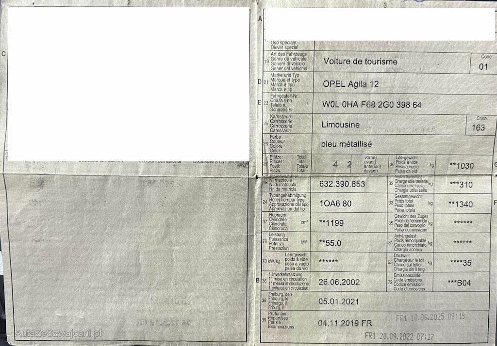 | Typ | Agila 1.2 16V Comfort |