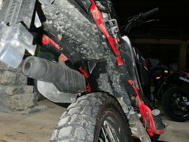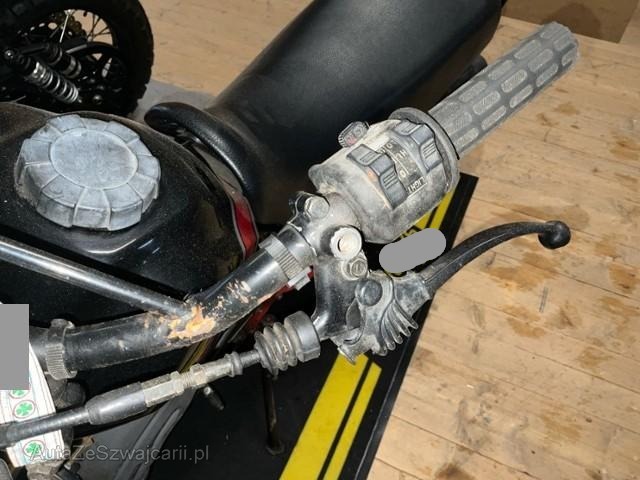 | Condition_and_Equipment | Zustand Fahrzeug muss transportiert werden (Höhe und Breite beachten). Fahrzeug ist NICHT fahrbar. Zweirad-Kategorie Motorrad --- Front Vorderrad beschädigt. Gabel beschädigt. Lenker verbogen. Motor Öl-/Kraftstoffaustritt vorhanden Sonstige Schäden Div. Teile sind leicht beschädigt. |
