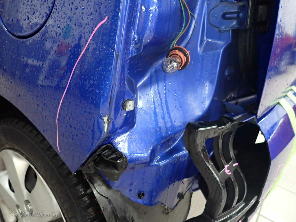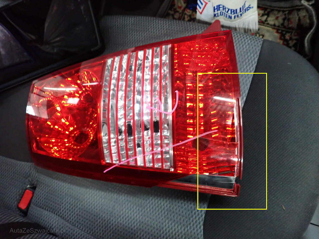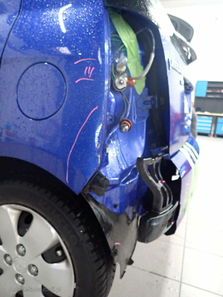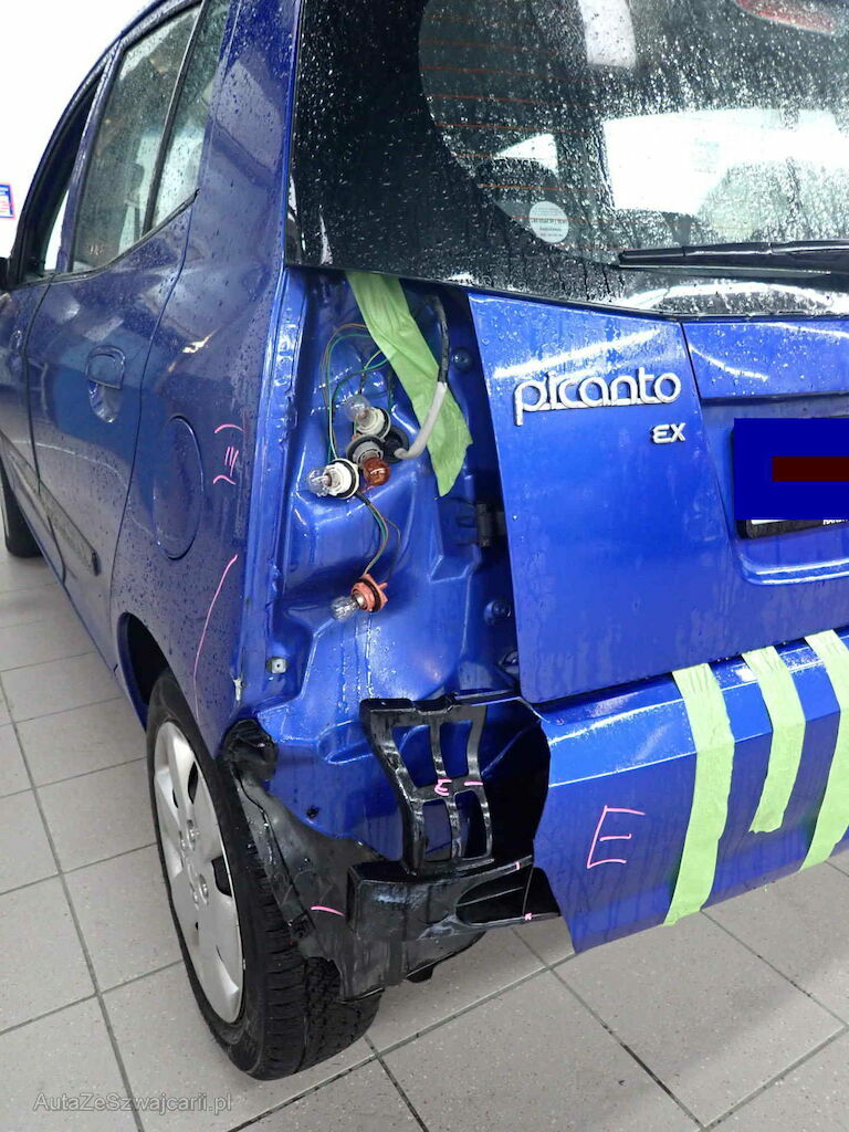 Anprall Ecke L, dabei wurde die Stossstange beschädigt, die Rückleuchte sowie die Seitenwand HL