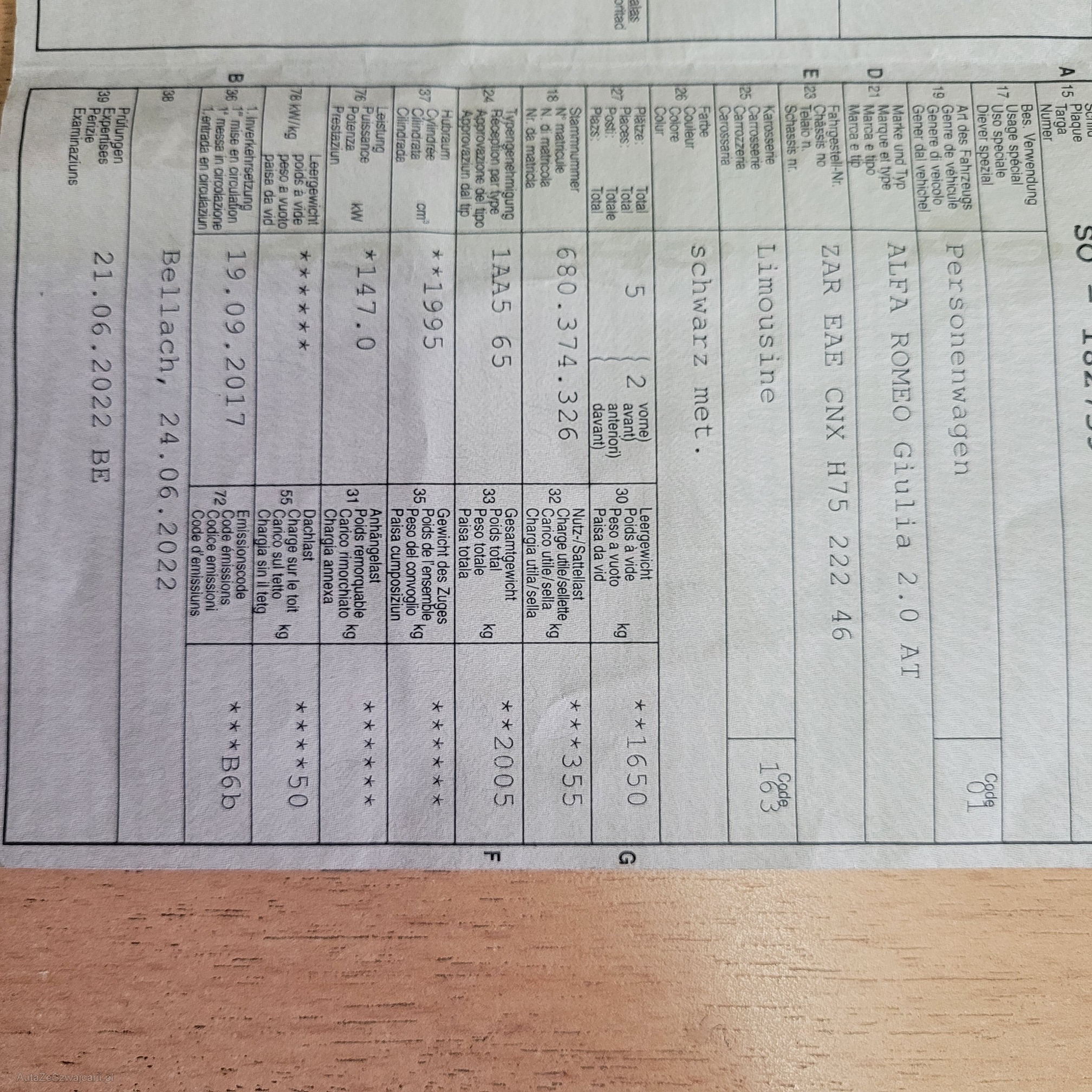 | VIN | ZAREAECNXH7522246 |