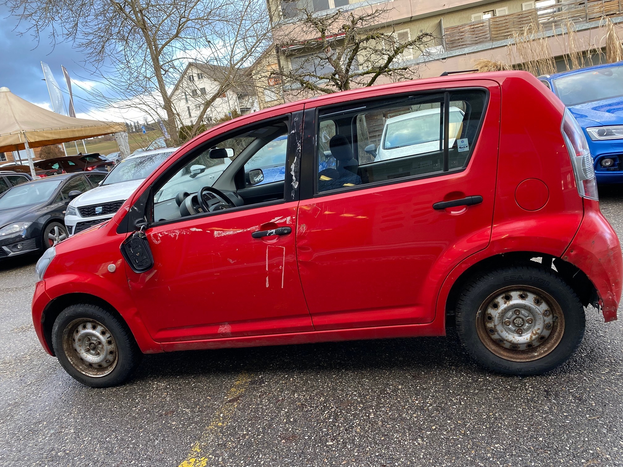 | Kommentar | Fahrzeugkauf auf eigenes Risiko ab Platz ohne Nachbewärschaft. Fahrzeugzustand und Ausstattung gemäss Bildern. Fahrertür hat einen Schaden, Spiegel und Seitenscheibe defekt. Auch sonst rundherum diverse defekte. Keine technische prüfung durchgeführt |