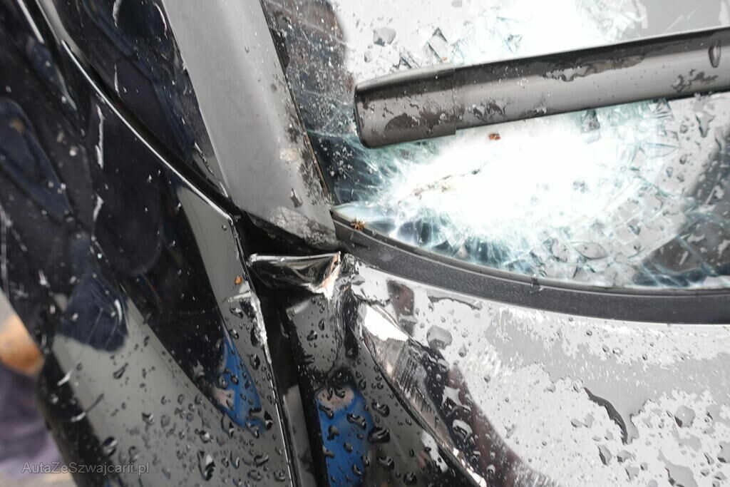 Portes avant et arrière, vitre avant, rétroviseur, bas de caisse, pare-brise, capot, montant A, essieu, jantes avant droite et gauche; endommagés.