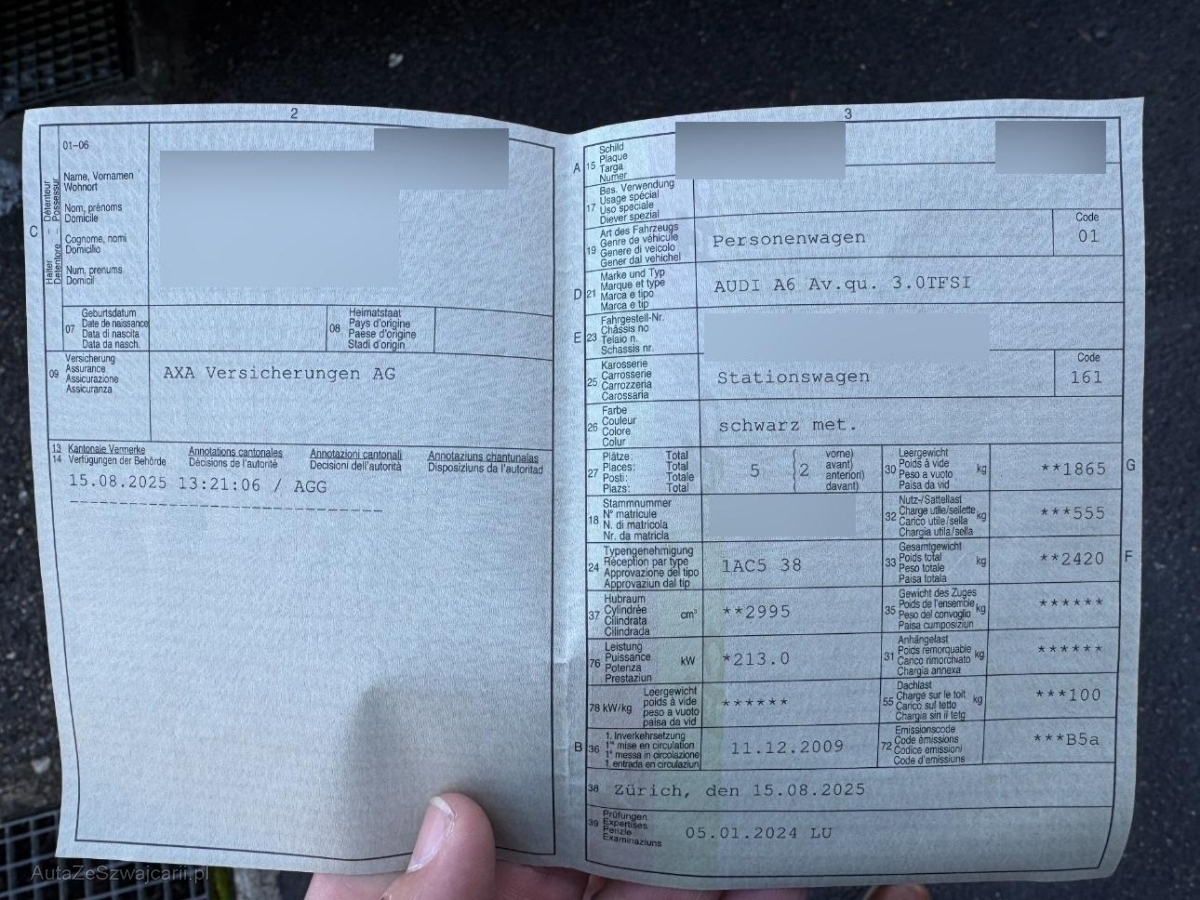 | Fahrzeugausweis | Vorhanden |