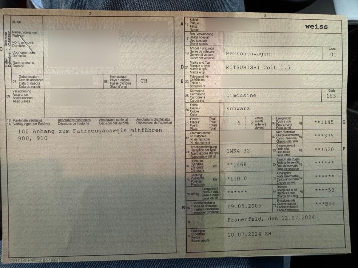 | Fahrzeugausweis | Vorhanden |