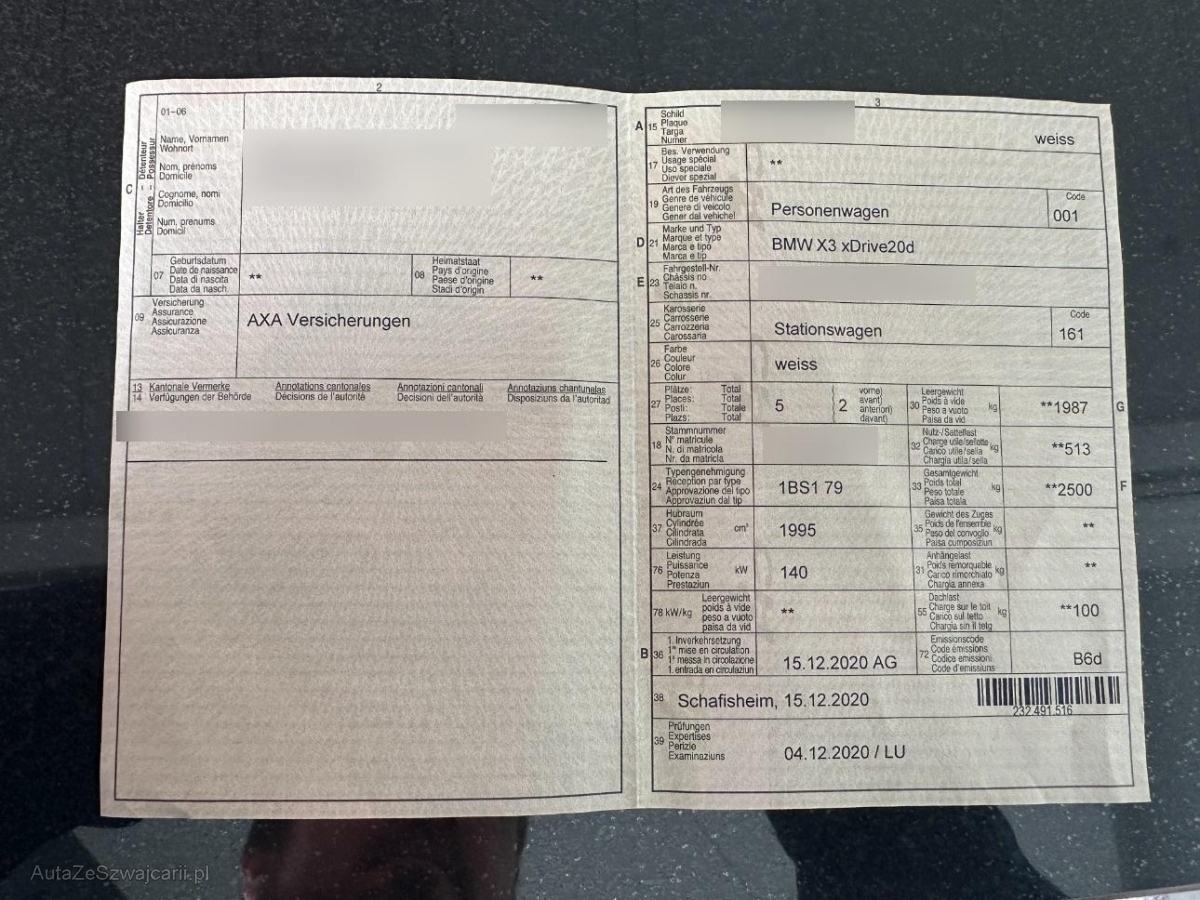 | Fahrzeugausweis | Vorhanden |