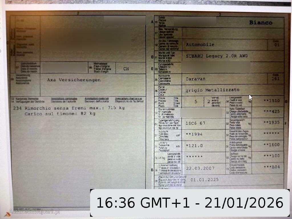 SUBARU Legacy 2.0R AWD Swiss, 165 PS