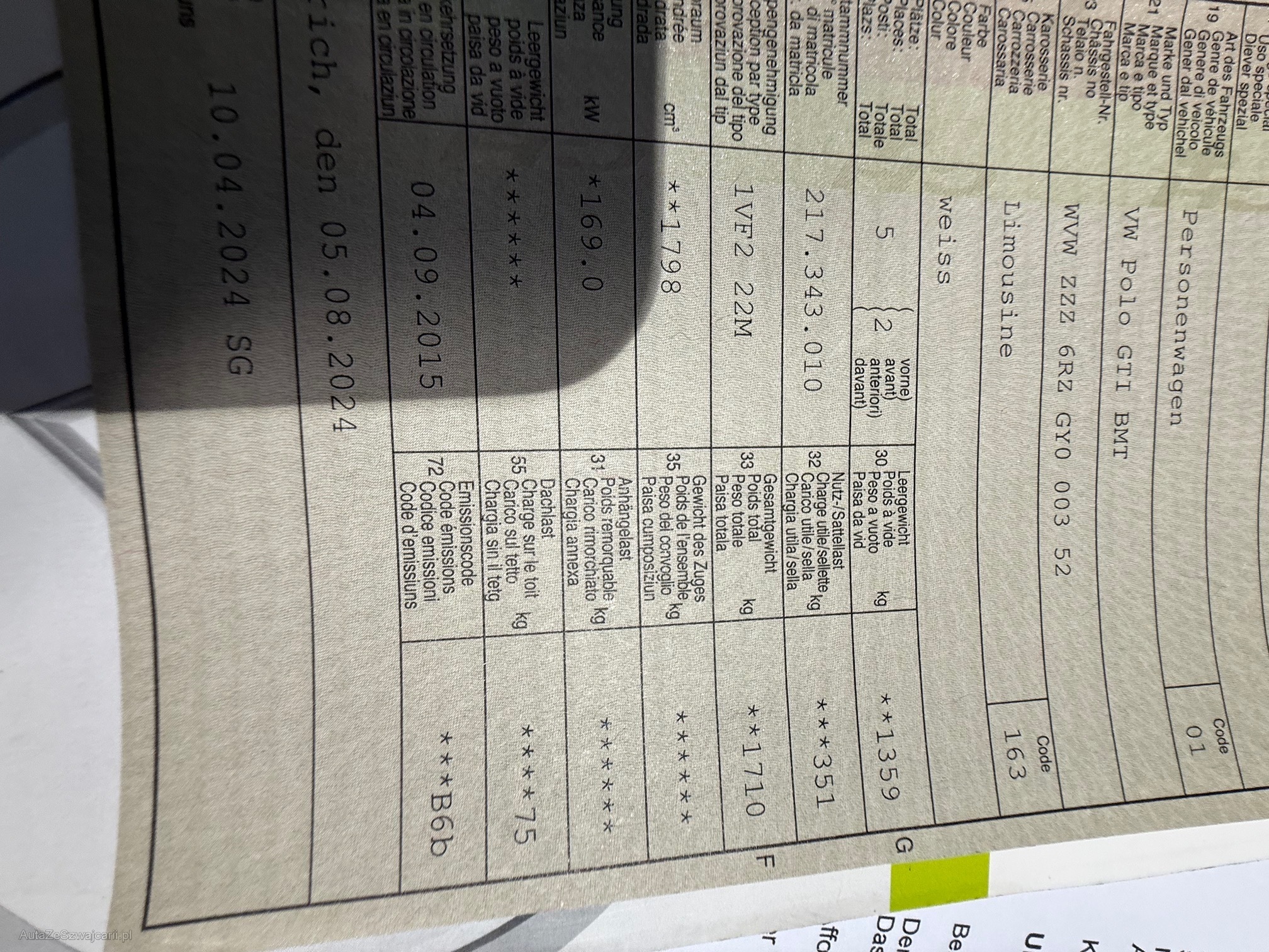 | Kommentar | Gepflegter Polo GTI , Kupplung mit 136000ers. Kein Werkstattest durchgeführt, Kauf auf eigenes Risiko ohne jegliche Nachgewährschaft Karosserie gemäss Fotos |