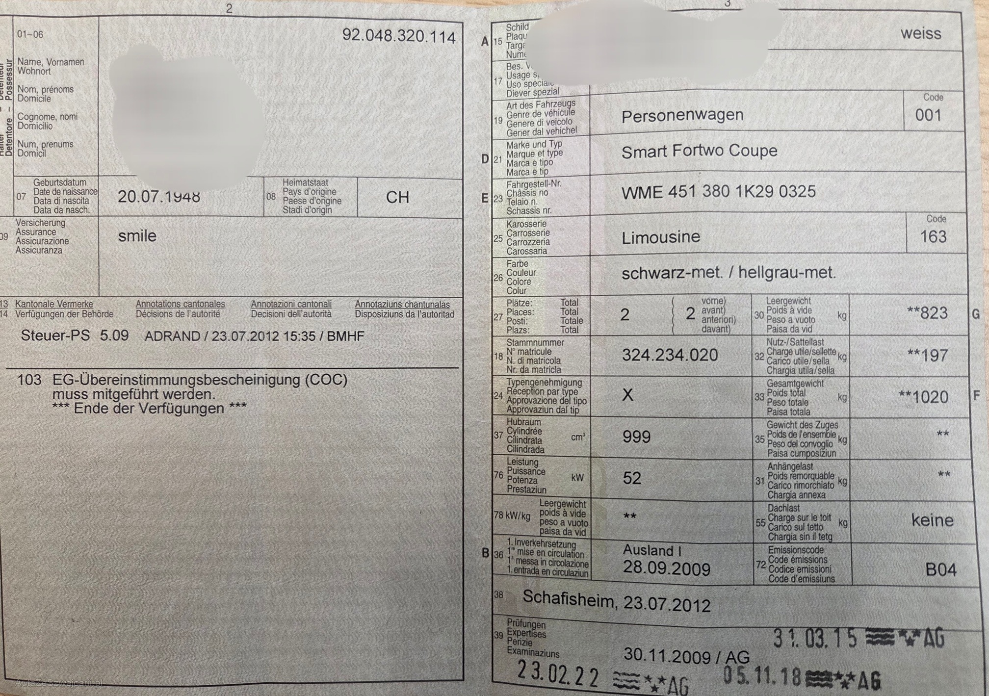 | Kommentar | Wie oben erwähnt, Aktuator Getriebe Defekt, für MFK Bremse V, Domlager VL + VR, Gasdruckdämpfer Hecklappe ersetzen, Karosserie in gutem Zustand, Kratzer siehe Fotos |