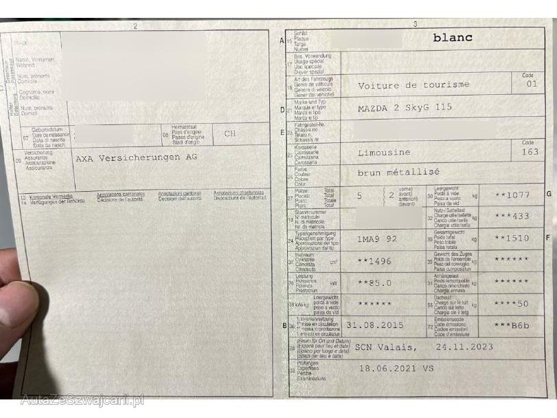 | Fahrzeugausweis | Vorhanden |