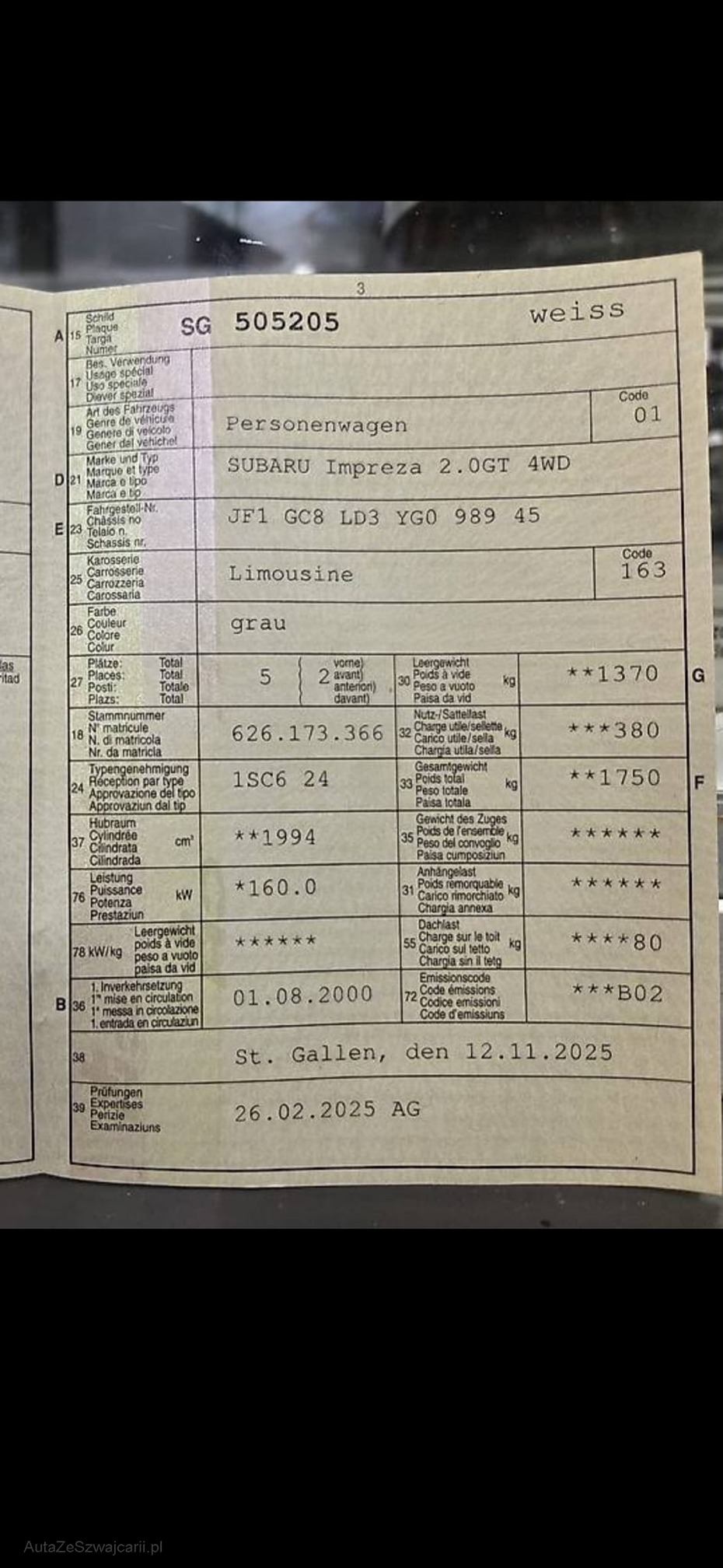 | Kommentar | Verkauf in Kundenauftrag Verkauf ausschliesslich ab Platz, Jede Gewährleistung, soweit nach Gesetz möglich, wird wegbedungen, insbesondere sind Wandelung und Minderung ausgeschlossen. Der technische Zustand ist unbekannt, das Fahrzeug wurde nicht geprüft. Zustand wie auf den Bildern, kann jedoch bei der Abholung abweichen. (z. B. Mängel, die uns nicht bekannt sind.) Sämtliche Mängel sind Sache des Käufers. Keine Rücknahme, keine Nachverhandlung, kein Preisnachlass. Kauf erfolgt wie gesehen. |