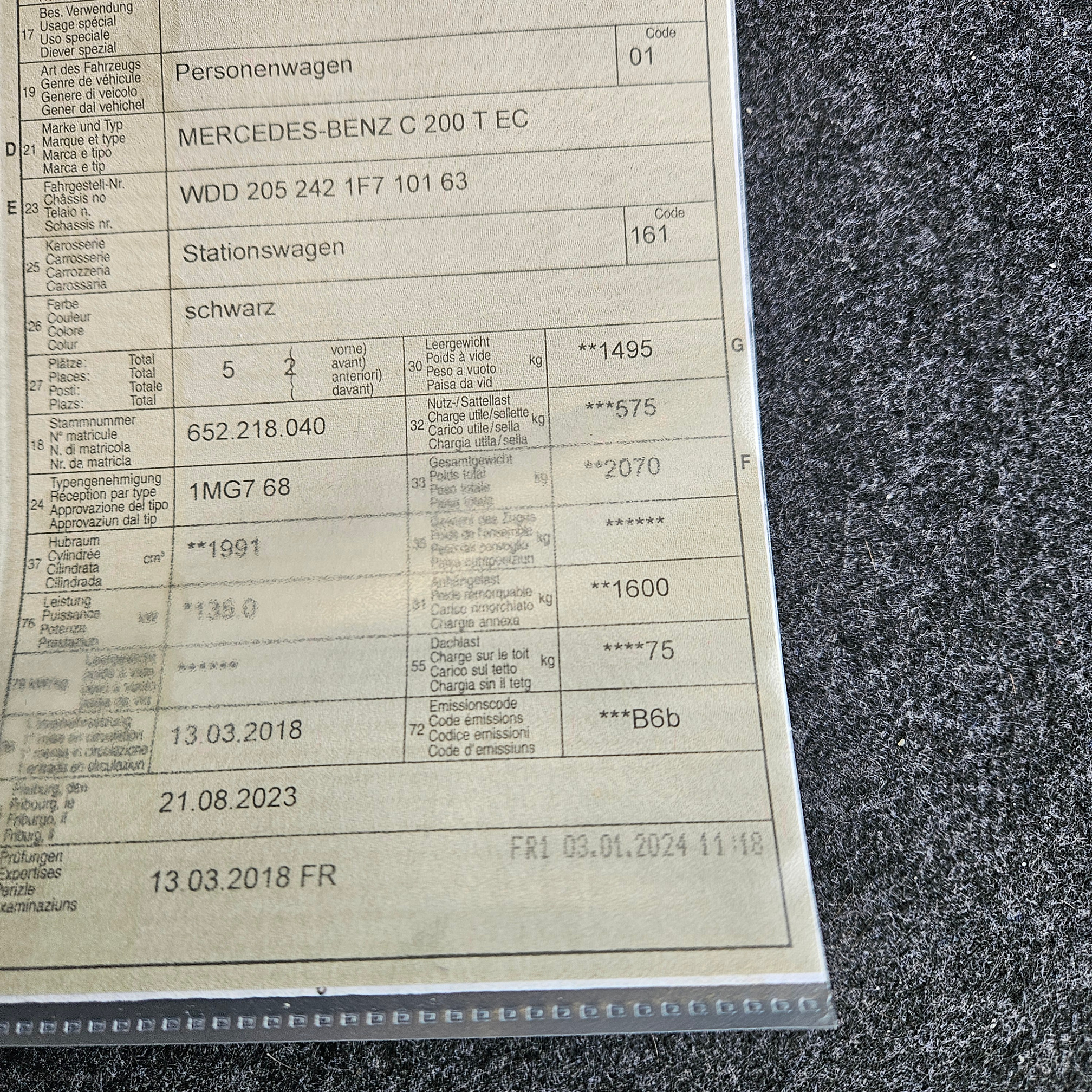 | VIN | WDD2052421F710163 |