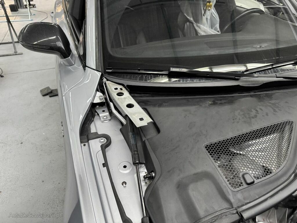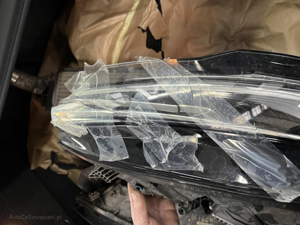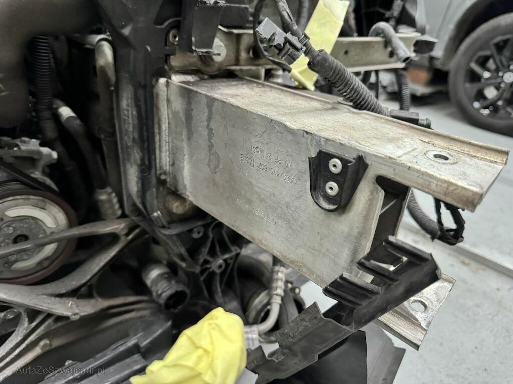 Dabei wurde die gesamte Stossstange, beide Matrix Scheinwerfer, alle Kühler, die Motorhaube und diverse Anbauteile deformiert.