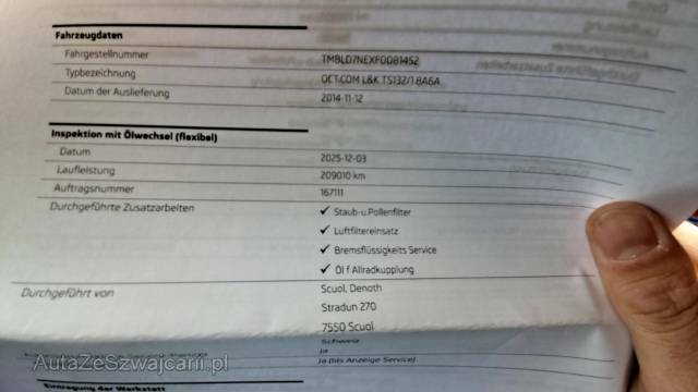 | Serienausstattung | 3-Punkt-Sicherheitsgurte auf allen Plätzen, 4 Speichen Multifunktionslenkrad in Leder für Radio und Telefon, ABS, EBD elektronische Bremskraftverteilung, Ablagefach, Ablagefach unter dem Beifahrersitz, Ablagen in den Türen, Airbag: Airbag Beifahrer deaktivierbar, Airbag: Airbag Fahrer und Beifahrer, Airbag: Knie-Airbag für Fahrer, Airbag: Seitenairbag für Fahrer und Beifahrer, Airbag: Window-Kopfairbags, Alcantara-/Kunstleder-Ausstattung, Allradantrieb permanent, Antriebsschlupfregelung (ASR), Aussenspiegel rechts und links beheizt, elektrisch verstell-/ und einklappbar mit Memory, automatisch abblendend, Aussenspiegel und Türgriffe in Wagenfarbe, Berganfahrhilfe (Hill Holder), Bi-Xenon Lichtanlage, Blinker in Aussenspiegel, Bluetooth-Schnittstelle für Mobiltelefon, Bremsassistent (BAS), Bremsenergie-Rückgewinnung, Brillenablage, Cargo Organizer, Chrom-Paket, Dekoreinlagen Klavierlack, Digitaler Radioempfang (DAB/DAB+), Drittes Bremslicht, Einstellbare Lendenwirbelstütze für den Fahrer und Beifahrer, Elektrische Fensterheber vorne + hinten, Elektronische Differentialsperre, Elektronisches Stabilitäts-Programm (ESP), Flaschenhalterungen hinten, Fussraumbeleuchtung vorne und hinten, Gurtkontrolle, Heckscheibenheizung, Höhenverstellbare Gurten vorne, ISOFIX Kindersitzvorrichtung, Innenspiegel automatisch abblendbar, Katalysator geregelt, Klima: Klimatisierungsautomatik Climatronic, Komfortblinker, Lackierung: Uni-Lackierung, Leichtmetallräder Turbine 18J, Lenkrad längs- und höhenverstellbar, Licht- und Regensensor, Licht: LED Heckleuchten, Licht: LED-Tagfahrlicht, Licht: Nebelscheinwerfer mit Cornering-Funktion, Lichtwarnsummer, Make up-Spiegel links, Make up-Spiegel rechts, Media-In, Multifunktionslenkrad mit Audio- und Telefonbedienung, Navigationssystem AMUNDSEN, Nebelschlussleuchte, Nichtraucherausführung, Park Distance Control vorne und hinten, Radiovorbereitung, Antenne und Entstörung, Reifenreparatur-Set mit Kompressor, Räder: Pannenset, Räder: Reifendruck-Kontrollanzeige, Scheibenwischer vorne mit Intervall, Scheinwerfer-Waschanlage, Sequentielles 6-Gang-Getriebe mit Automatikfunktion, Servolenkung, Sitzbezüge Stoff/Leder, Sitze: 3 Kopfstützen hinten, Sitze: Fahrersitz elektrisch verstellbar mit Memory, Sitze: Fahrersitz höhenverstellbar, Sitze: Mittelarmlehne vorne inkl. grosser Jumbo-Box (kühlbares Ablagefach), Sitze: Rücksitzlehne geteilt abklappbar, Sitze: Vordersitze heizbar, Soundsystem, Start/Stop-Funktion, Tagfahrlicht, Teppichfussmatten vorne und hinten, Wegfahrsperre elektronisch, Wärmeschutzverglasung, Zentralverriegelung mit Fernbedienung |