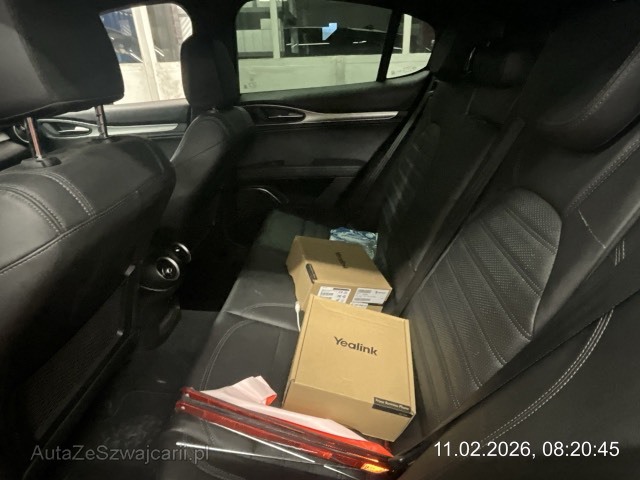 | Serienausstattung | V- Scudetto In Dark Miron, Sonnenblende Beifahrer mit Spiegel und integrierter Beleuchtung, Heckscheiben-Wisch-/Waschanlage, Pedalerie mit Aluminiumauflage, Media: 8,8" Farbiges Multitouch-Display mit Navigationssystem, Regensensor für Scheibenwischer vorne, Elektrische Heckklappe mit Fernentriegelung (Schlüsselknopf), Innenspiegel automatisch abblendbar, Licht: Ambientenbeleuchtung, Drehzahlmesser, Lackierung: Uni-Lackierung, Wegfahrsperre elektronisch, Bordcomputer, Getriebe: 8-Stufen-Automat sequentiell, Getönte Scheiben Privacy, Katalysator geregelt, Scheibenwaschdüsen beheizt, Licht: Halogenscheinwerfer, Bremssättel rot lackiert, Licht: Drittes Bremslicht, Servolenkung, 3-Punkt-Sicherheitsgurte auf allen Plätzen, Fahrerseitige Sonnenblende Mit Spiegel, Dark Miron Unterfahrschutz, Media: Globales Telematik-Box-Modul (TBM), Media: Connected / Android Auto / Apple CarPlay, Polster: Sitze aus Stoff und Techno-Leder, Dekor: Aluminiumverkleidung an Armaturenbrett und Mittelkonsole, Zentralverriegelung mit Fernbedienung, Aussenspiegel elektrisch einklappbar, Lenkrad: Sportlenkrad Mit Lederbezug, Assist: Bergabfahrhilfe, Cybersecurity Level 3 Schutz, Media: USB+AUX-Anschluss in Der Armlehne, Lenkrad: Schaltwippen am Lenkrad für Automatikgetriebe, Dachhimmel schwarz, Assist: Spurhalteassistent, Sitze: Kopfstützen vorne höhenverstellbar, Scheinwerfer-Waschanlage, Einstiegsplatte aus Aluminium für die Untertür, Sitze: Kopfstützen hinten, Assist: Parksensoren vorne und hinten mit akustischer Warnmeldung, Assist: Active Cruise Control, Airbag: Airbag Fahrer und Beifahrer, Assist: Aktiver Totwinkel-Assistent, ABS, Ablagefach mit kabellosem Ladegerät für Smartphone, Media: 2 rückseitige USB-Anschlüsse, Assist: Autonome Notbremsung (AEB), Sportleder-Schaltknauf, Dunkelheitssensor, Sitze: Isofix-Befestigungspunkte Für Kindersitze Auf Den Rücksitzen, Licht: Bi-Xenon-Scheinwerfer (35W), Media: USB-Anschluss Vorne (Unter Der Klimabedienung), Heckscheibenheizung, Schallschutzpaket, Luftqualitätssystem (AQS), Assist: Rückfahrkamera, Media: 8-Lautsprecher-Audiosystem, Media: Uconnect Live über TBM - Europa, Räder: Reifenreparaturset (Kit Fix&Go), Keyless Entry / -Start, Licht: Fernlichtassistent High Beam, Räder: Reifenkit-Etikett - Fix&Go, Steckdose 12V, Räder: Reifendruck-Kontrollanzeige, Paket: ADAS Pack Plus, Räder: Radnabendeckel mit Schwarz-Weissem Alfa-Logo, Elektronisches Stabilitäts-Programm (ESP), Licht: Nebelschlussleuchte, Klima: Belüftungsdüsen im Fond, Media: Radio Dab+, Dunkle Auspuffendrohre Dunkle Auspuffendrohre, Media: 7" TFT-Instrumentendisplay, farbig, Kofferraum-Abdeckung |
